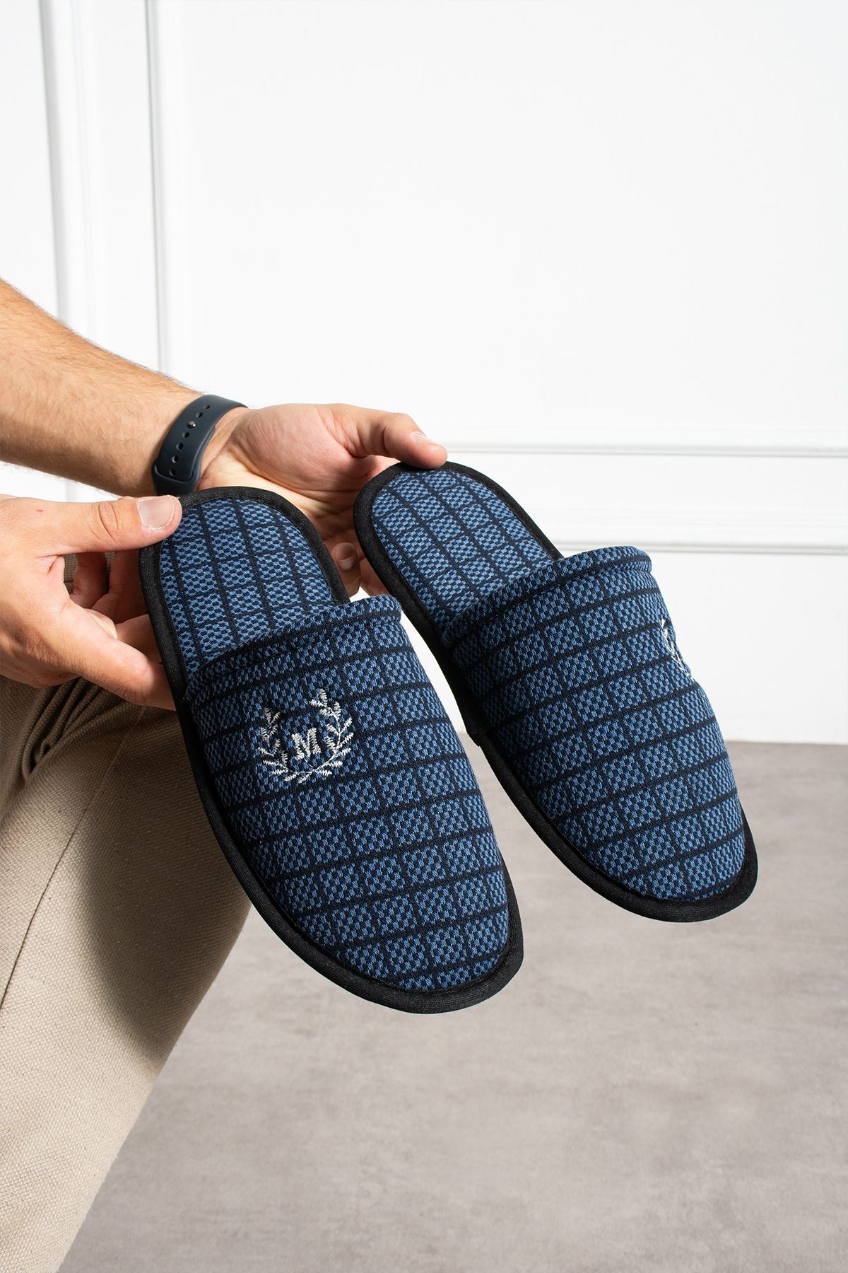 Astra Erkek Lacivert Kare Desenli Önü Kapalı Ev Terliği