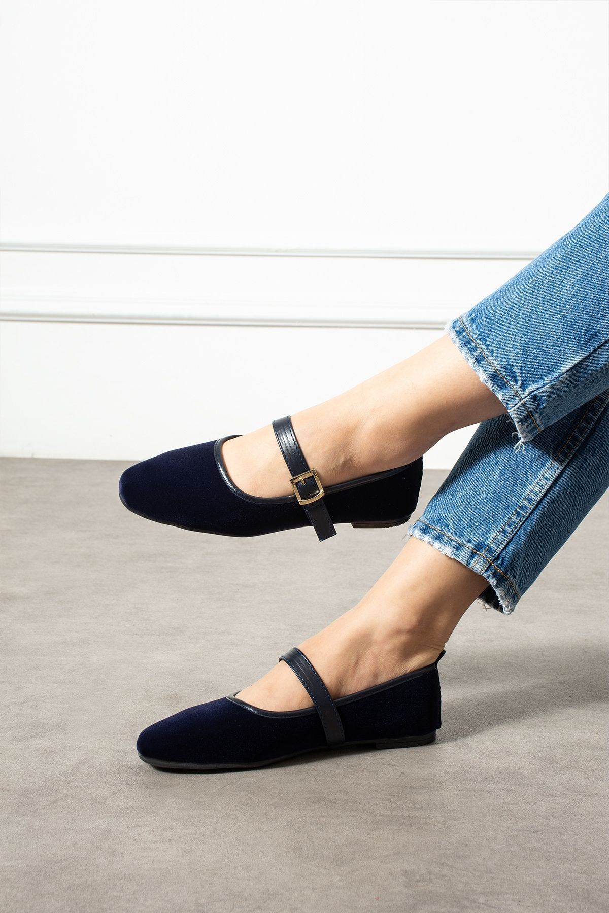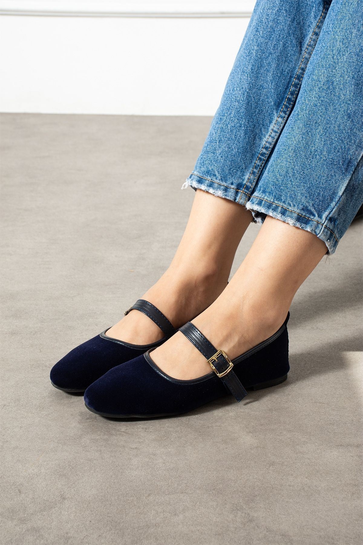 Bellina Lacivert Bantlı Gold Tokalı Kadife Dokulu Elegant Hafif Ev Babeti