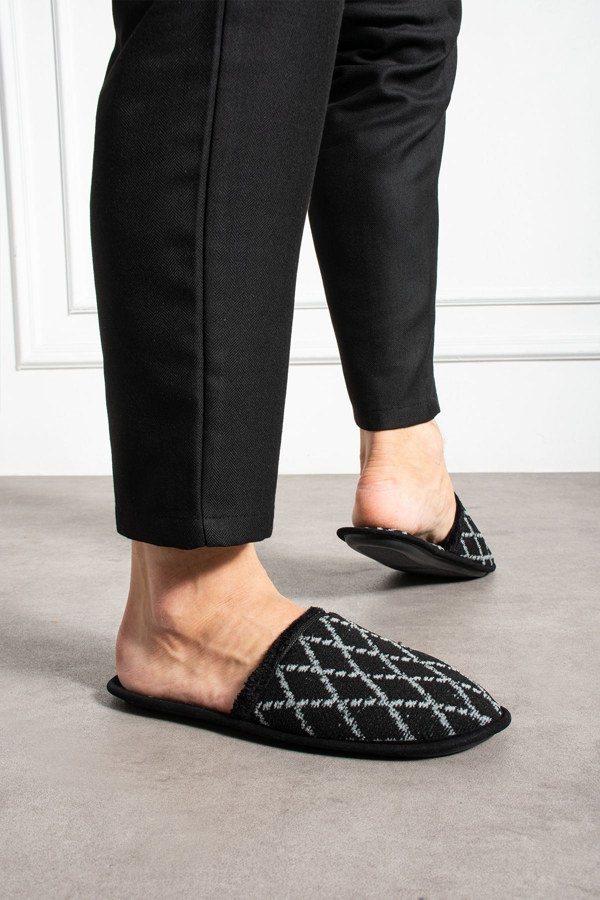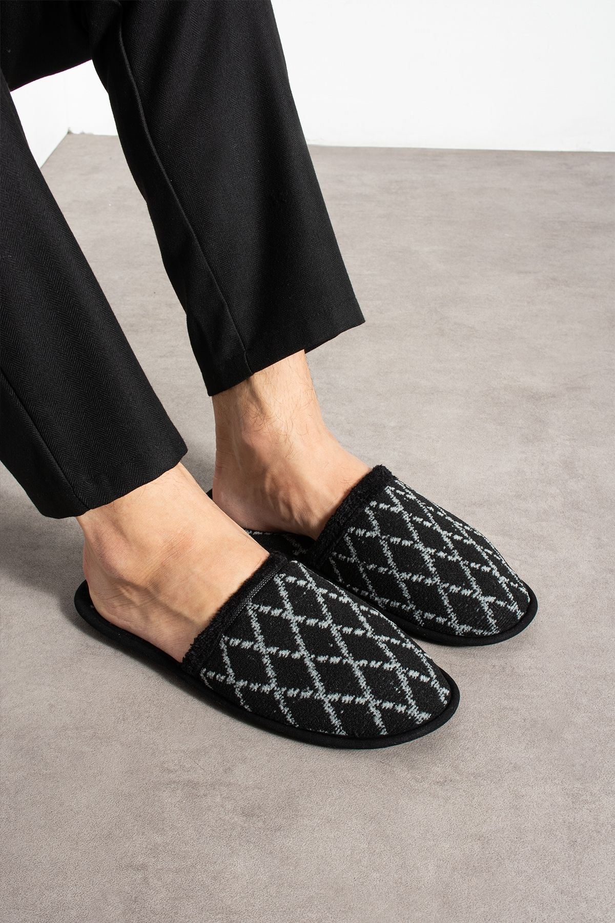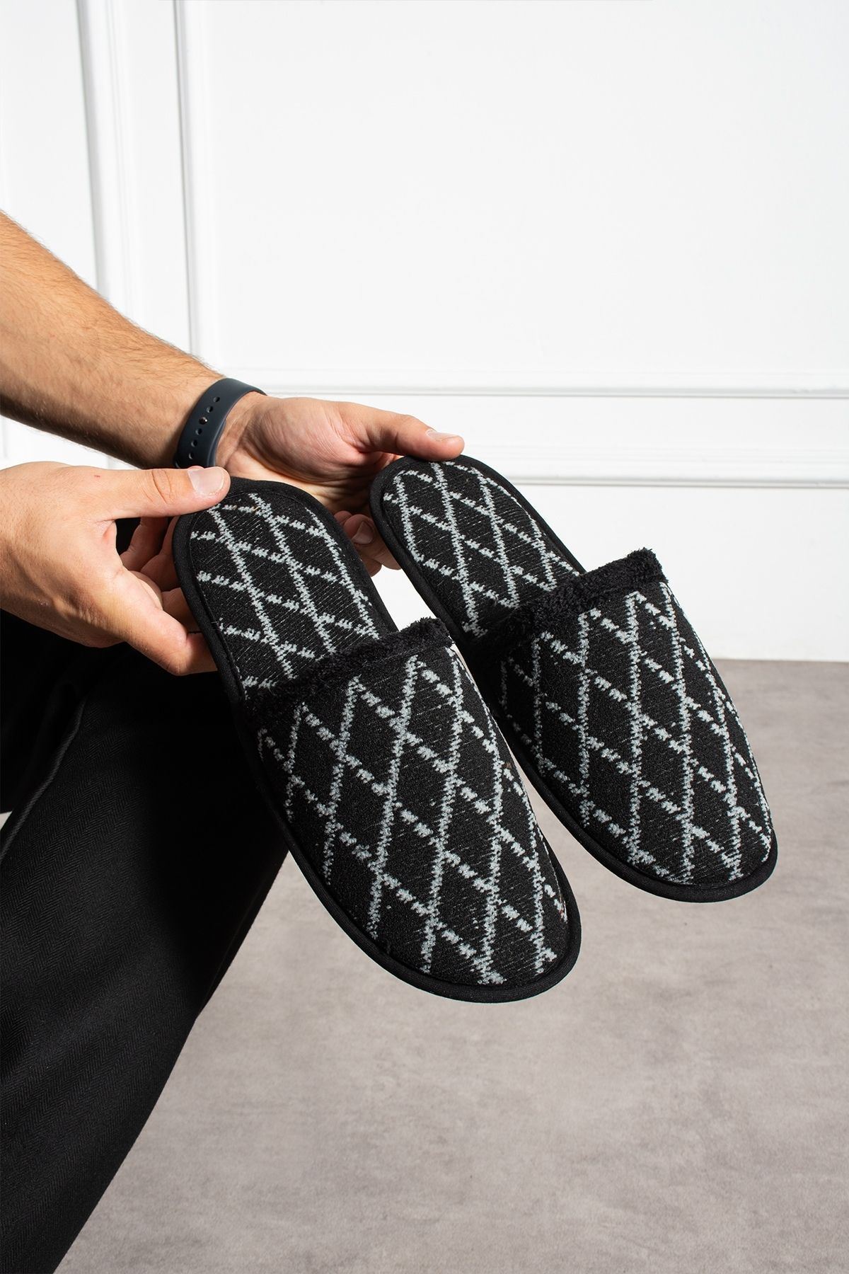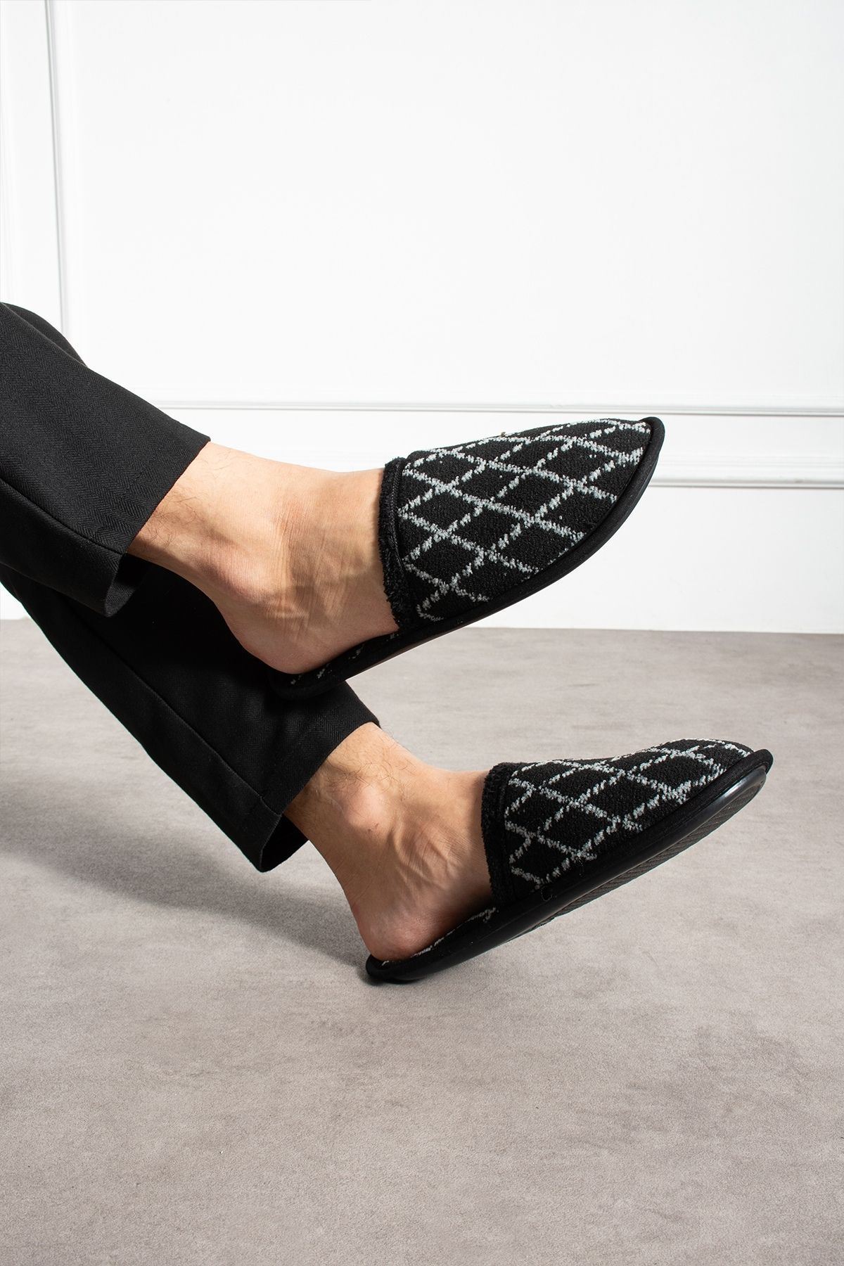 Florida Siyah Büyük Baklava Desenli Erkek Ev Terliği
