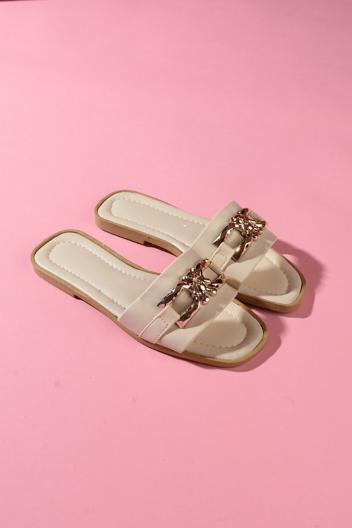 Luther Bej Gold Ayıcık Tokalı Terlik