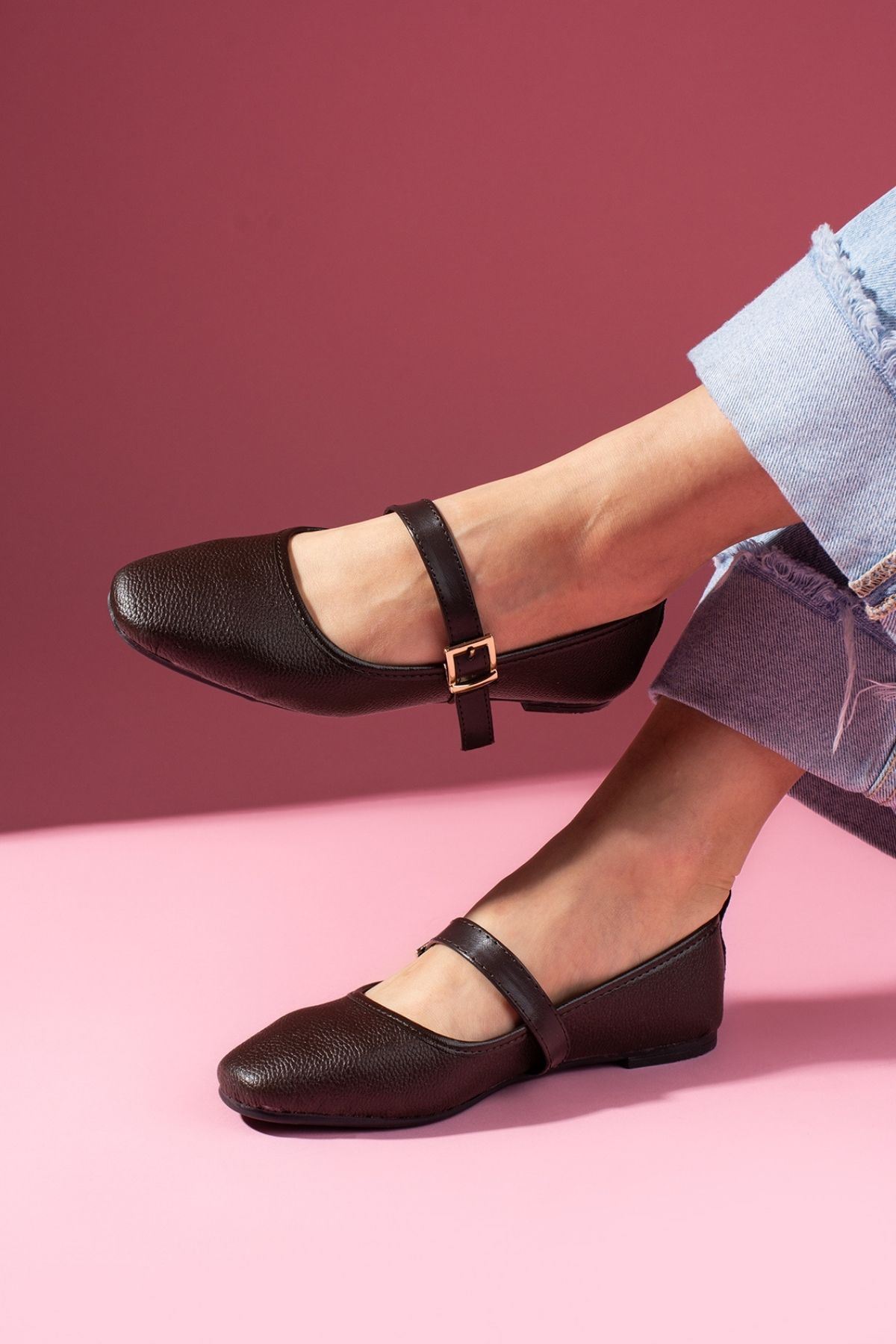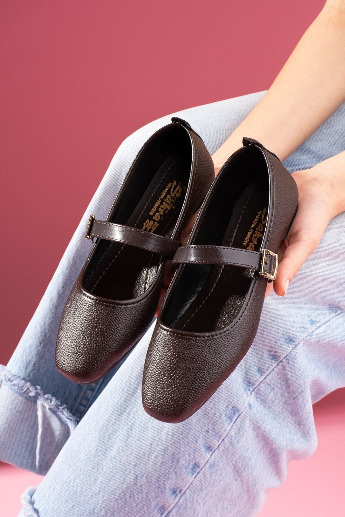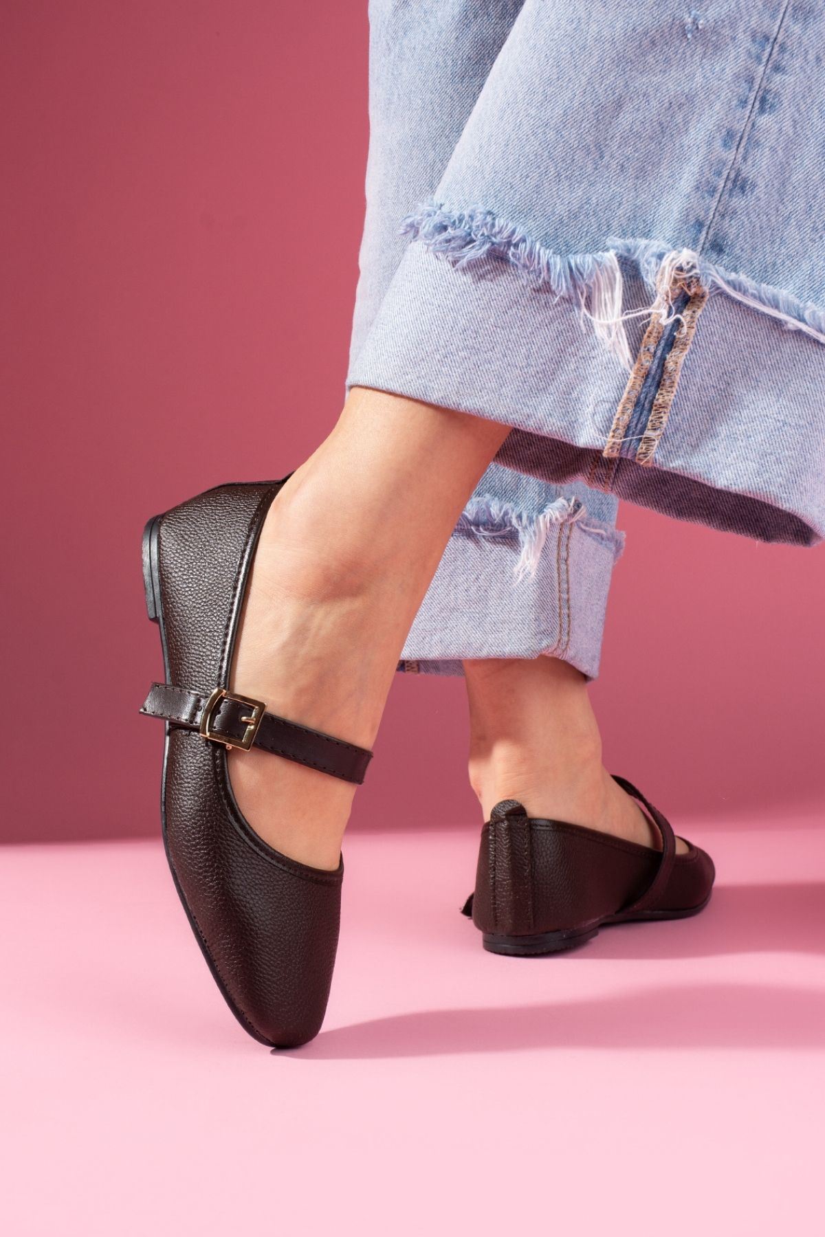 Valessa Kahverengi Natural Gold Tokalı Kemer Bantlı Babet