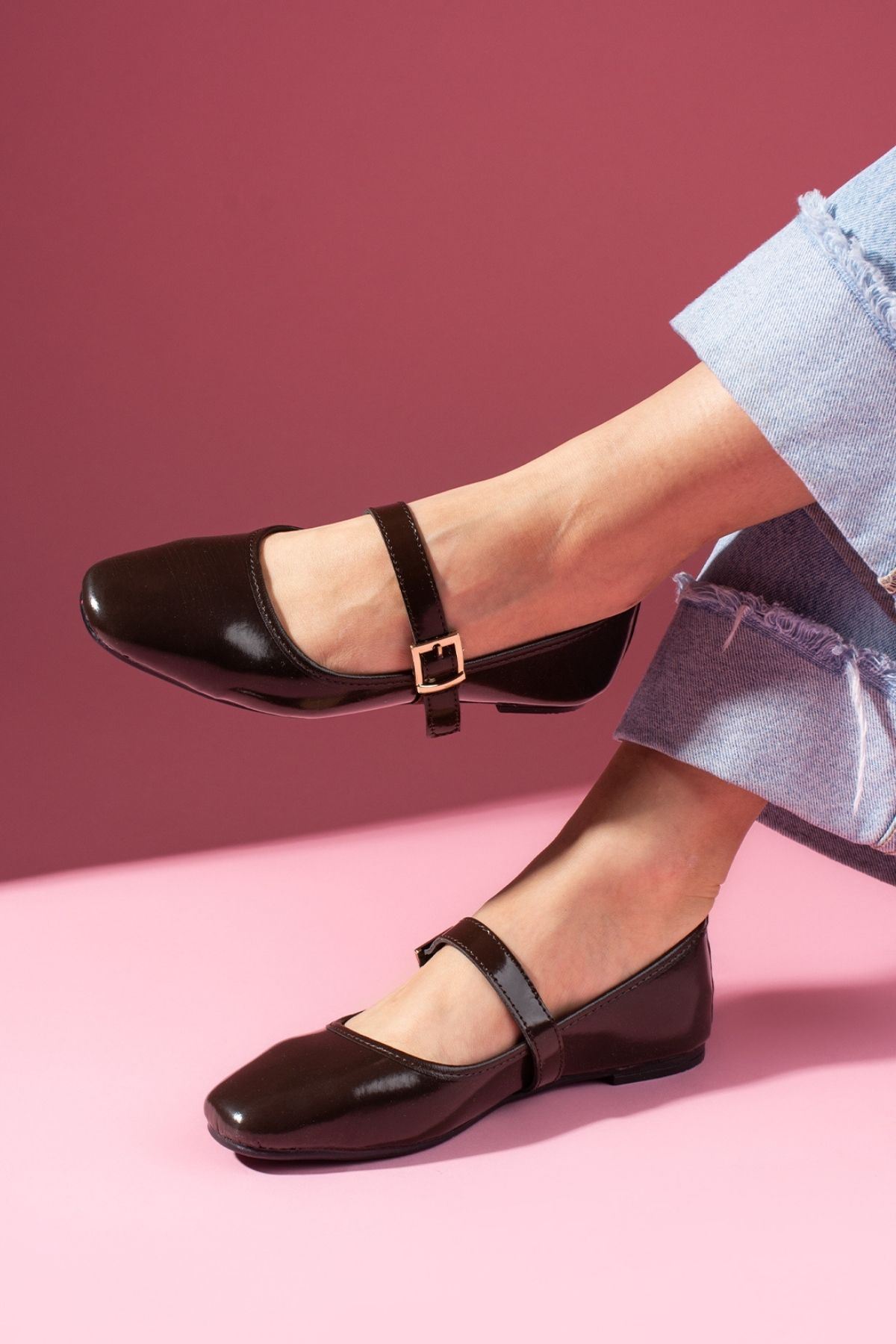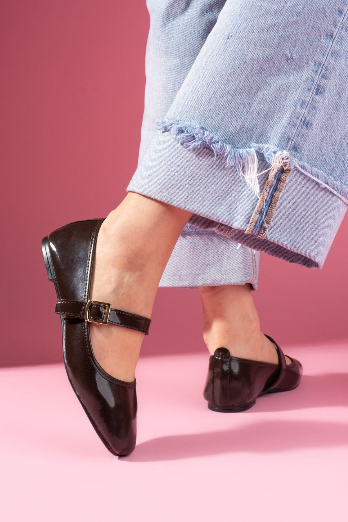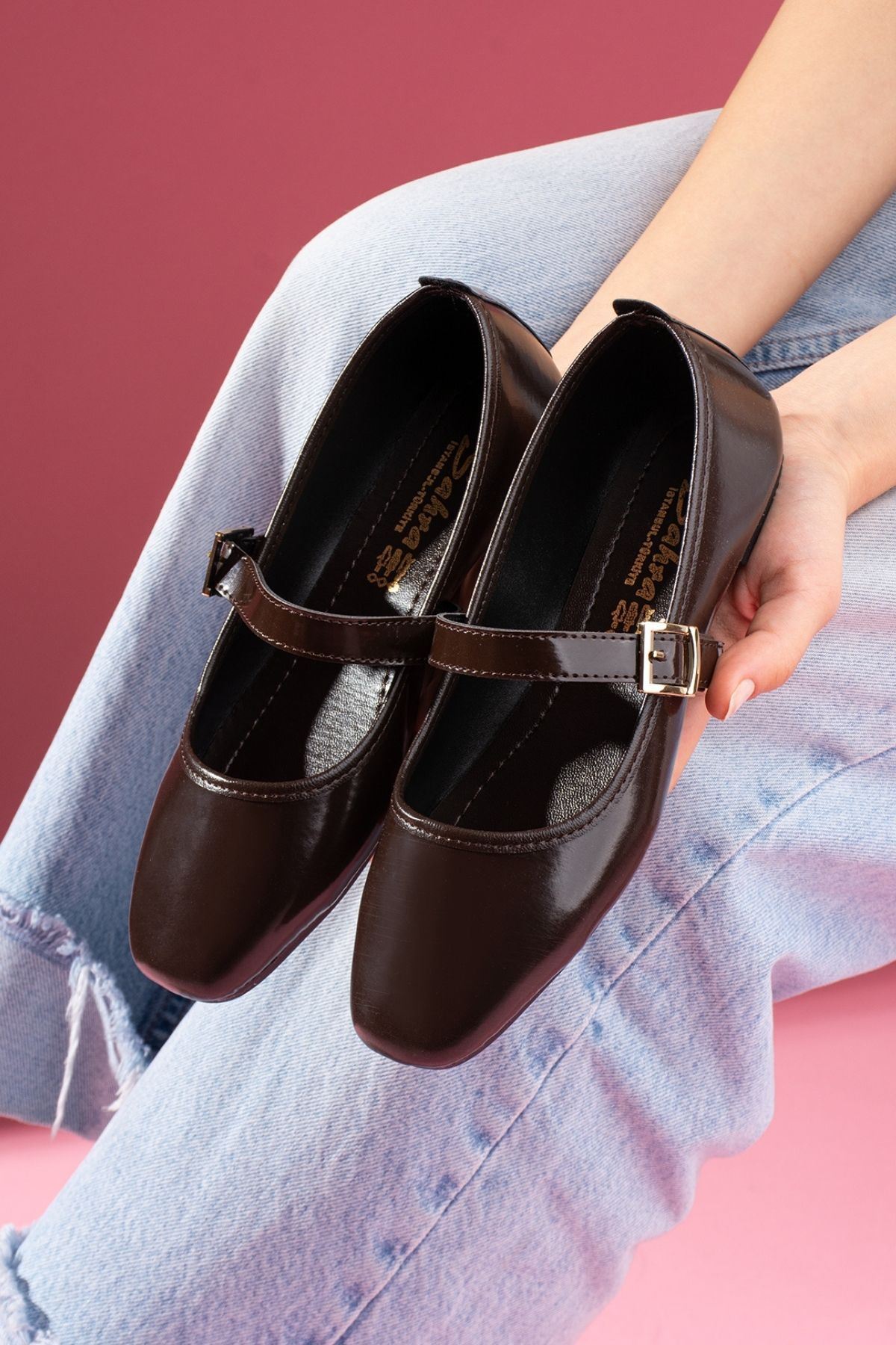 Valessa Kahverengi Rugan Gold Tokalı Kemer Bantlı Babet