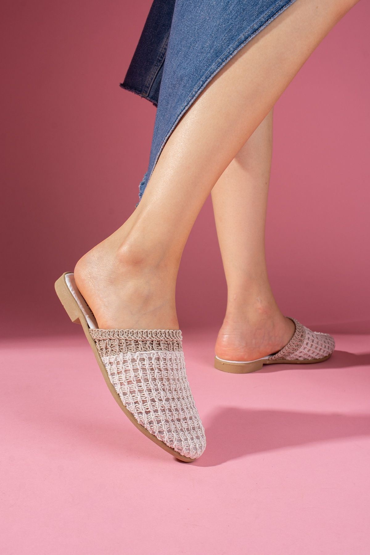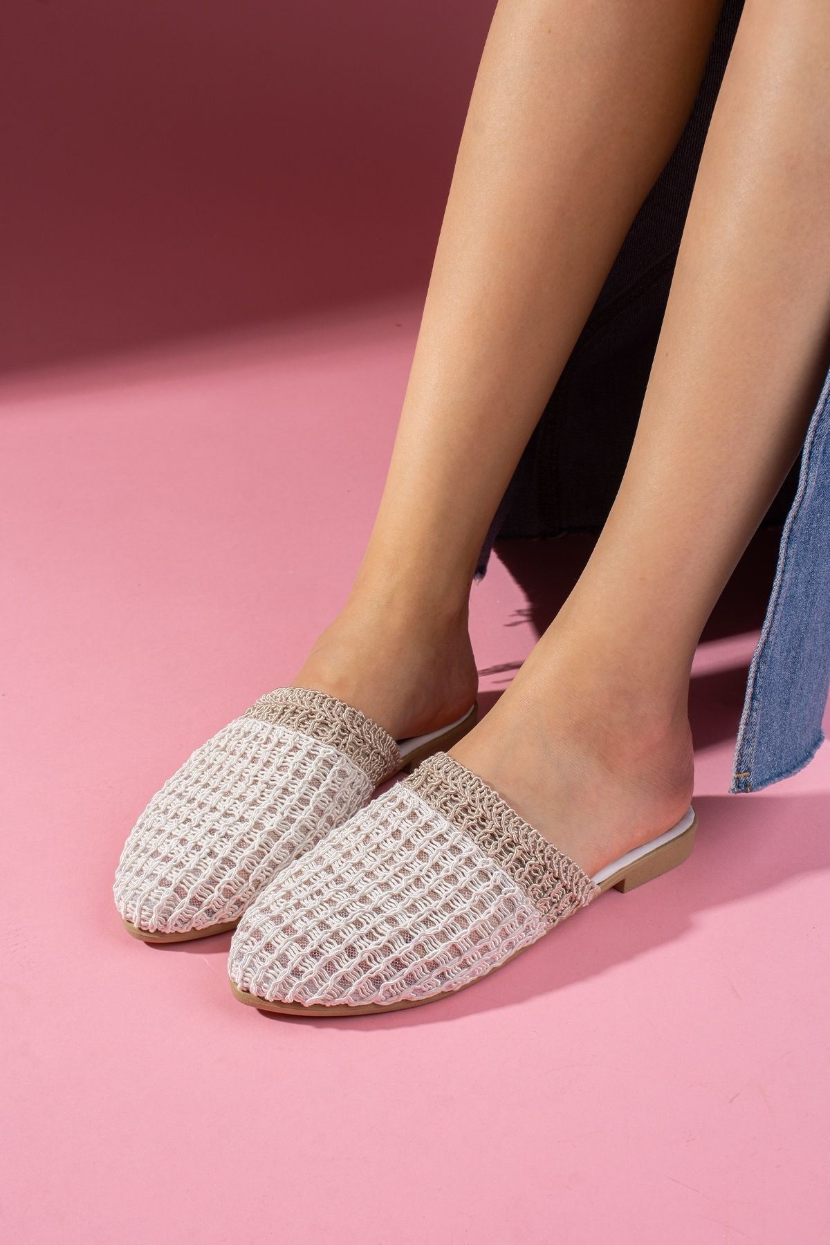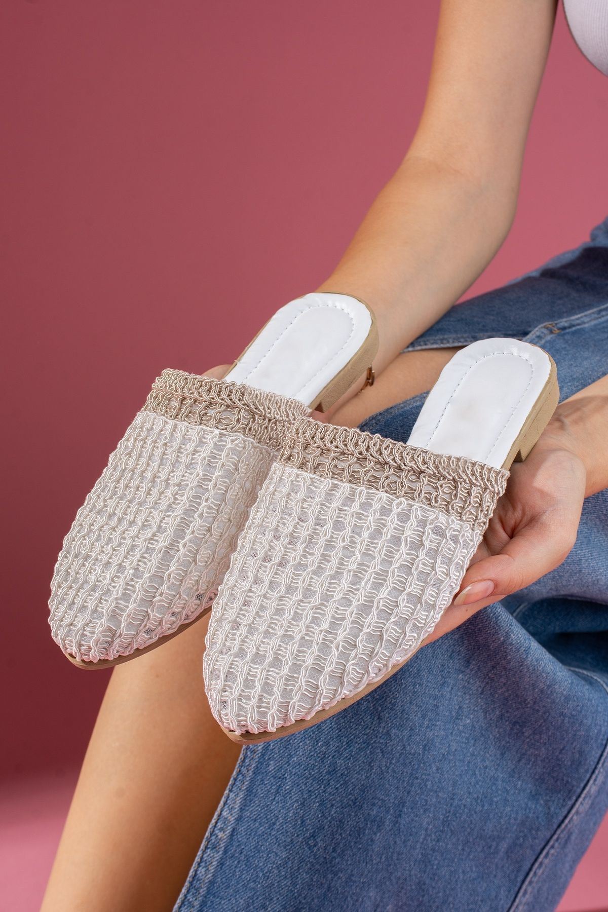 Zarif ve modern tasarımıyla dikkat çeken örgü detaylı kadın terlik modeli, hem şıklığı hem de rahatlığı bir arada sunuyor. Hafif yapısı sayesinde gün boyu konfor sağlarken, çapraz örgü detaylarıyla stilinize sofistike bir dokunuş katıyor.