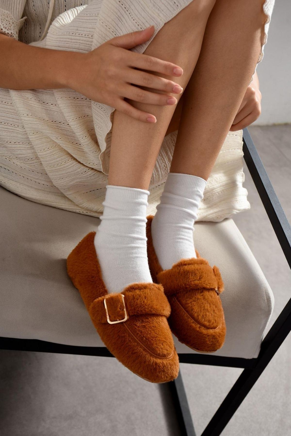 Yumuşacık dokusuyla konforu ve şıklığı bir araya getiren bu ev babeti, ev içi kullanımda sıcaklık ve rahatlık sunar. İç kısmında kullanılan sıcak tutan polibon astar, özellikle serin havalarda ayaklarınızı korur. Üst bölümdeki tokalı bant detayı ev stilinize zarif bir dokunuş katarken, hafif yapısı sayesinde gün boyu konfor sağlar. Sessiz tabanı ile her adımda huzurlu bir ev ortamı sunar.