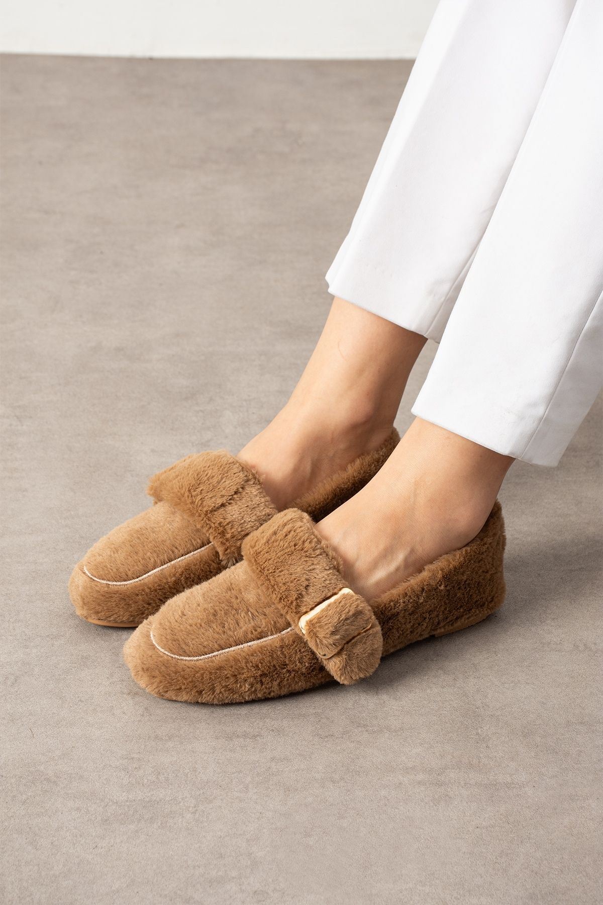 Yumuşacık dokusuyla konforu ve şıklığı bir araya getiren bu ev babeti, ev içi kullanımda sıcaklık ve rahatlık sunar. İç kısmında kullanılan sıcak tutan polibon astar, özellikle serin havalarda ayaklarınızı korur. Üst bölümdeki tokalı bant detayı ev stilinize zarif bir dokunuş katarken, hafif yapısı sayesinde gün boyu konfor sağlar. Sessiz tabanı ile her adımda huzurlu bir ev ortamı sunar.