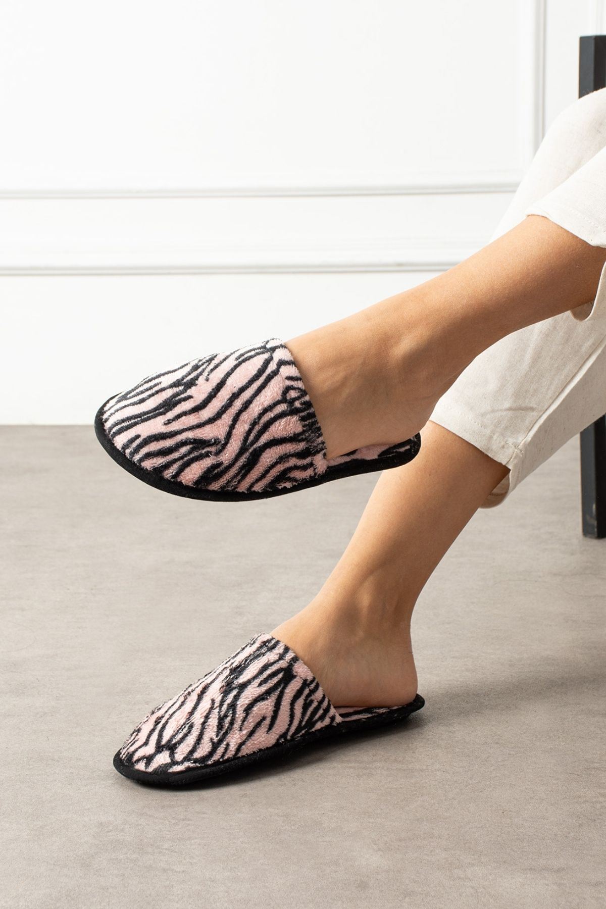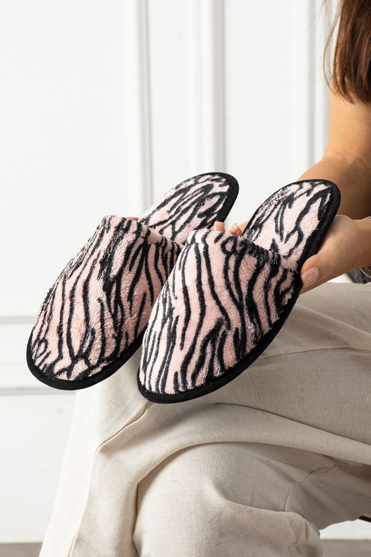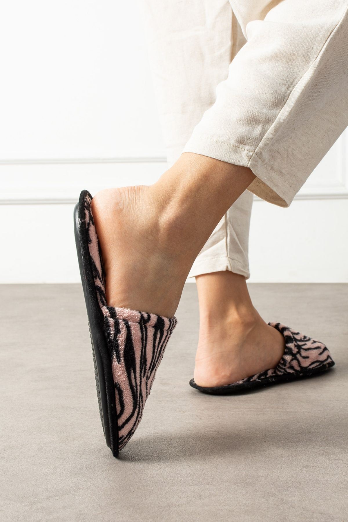 Alice Pudra Siyah Dalgalı Desenli Ev Terliği