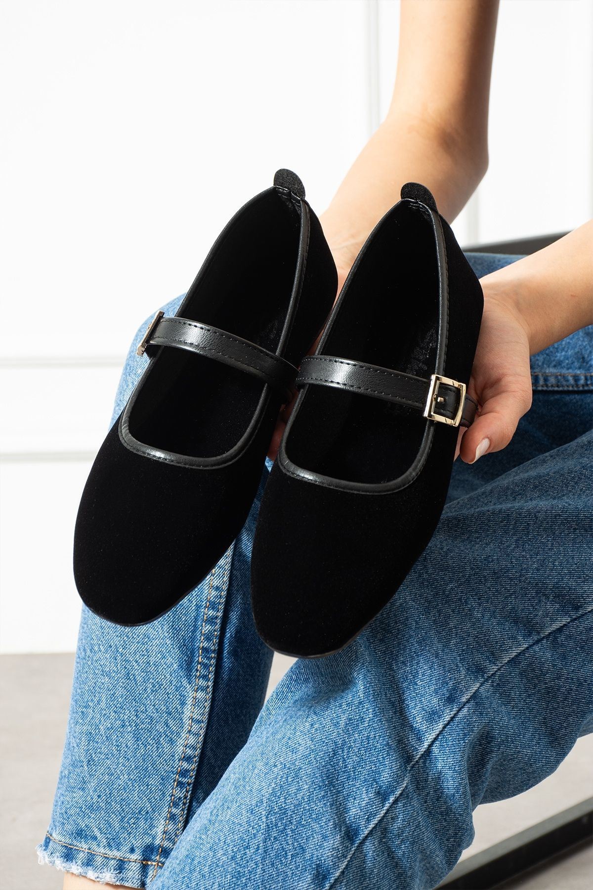 Bellina Siyah Bantlı Gold Tokalı Kadife Dokulu Hafif Ev Babeti