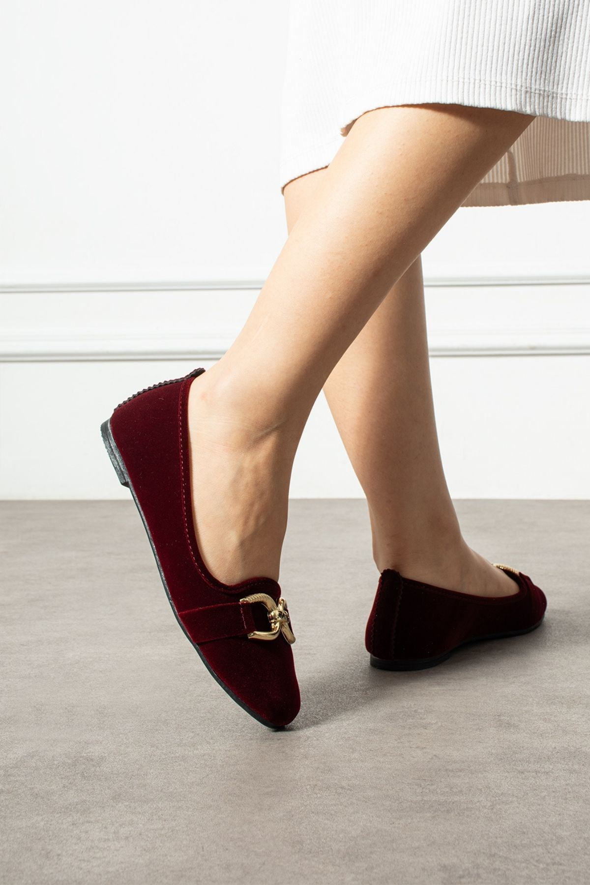 Haley Pudra Peluş Detaylı Kırçıl Kumaşlı Ev Babeti