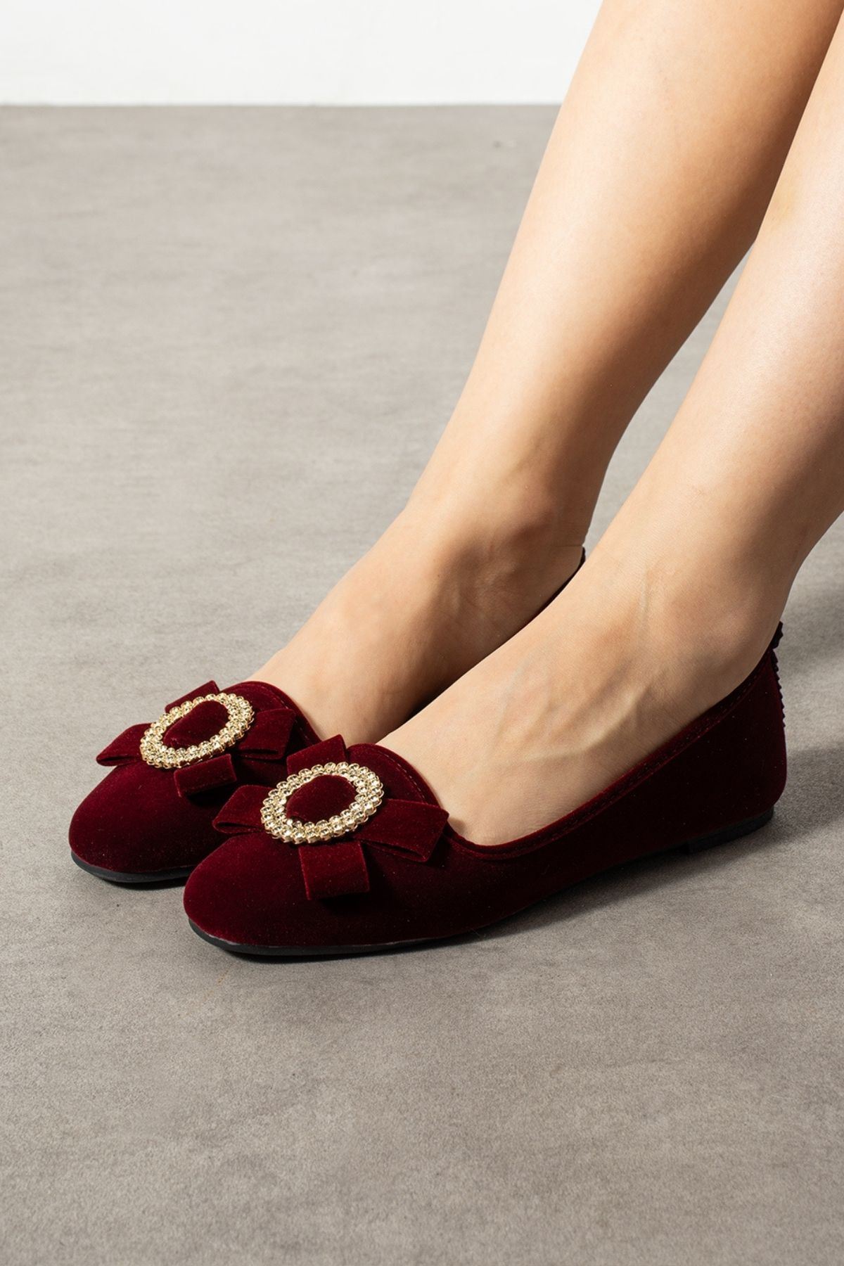 Alora Bordo Gold Tokalı Kadife Dokulu Elegant Nişan Çeyiz Bohça Misafir Ev Terliği