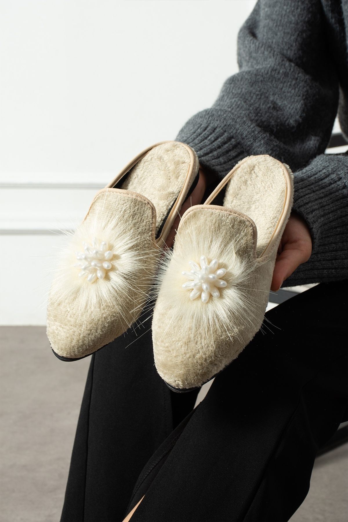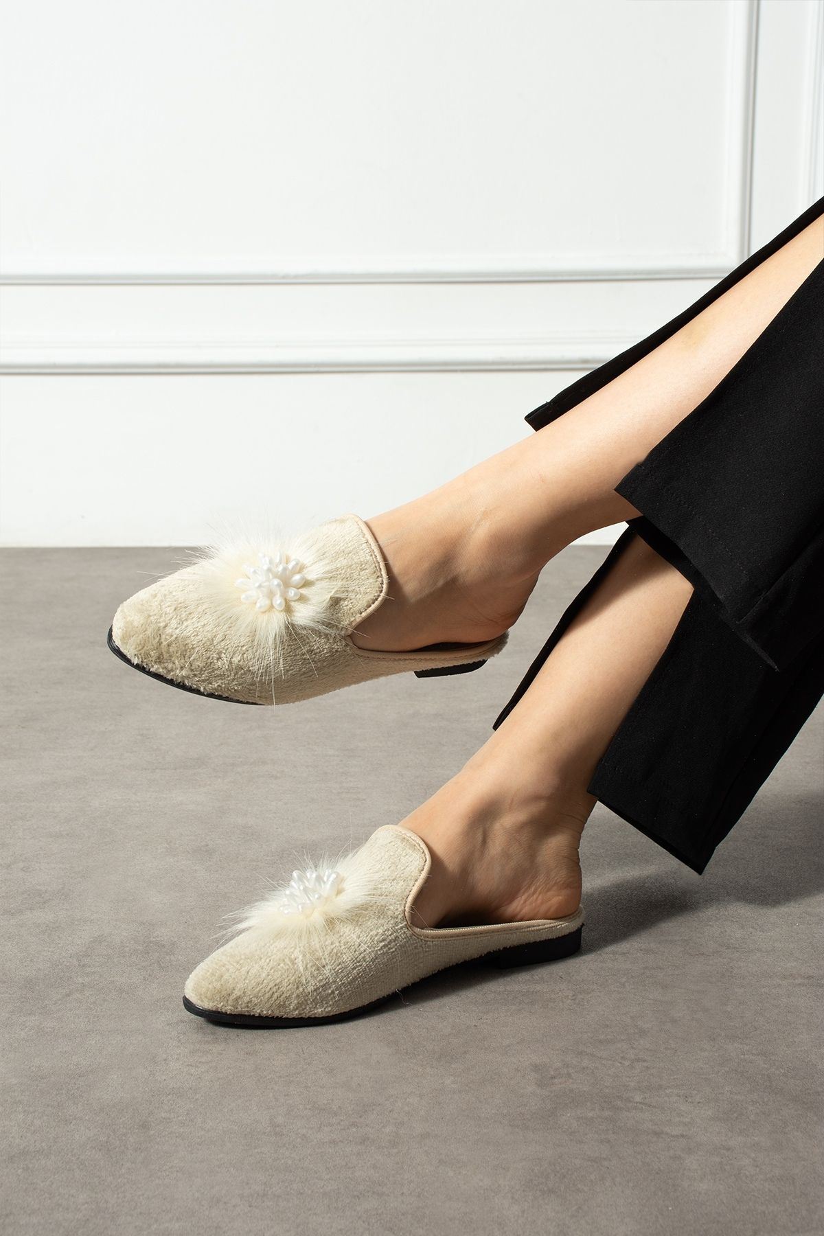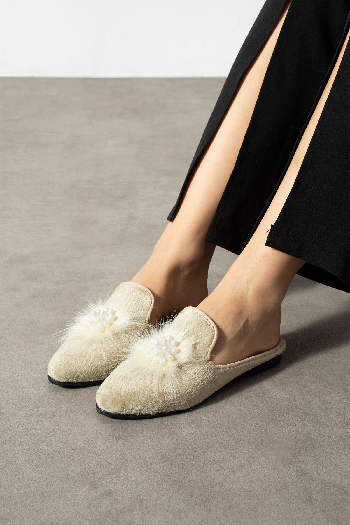 Cavina Bej Kısa Tüylü Elegant Nişan Çeyiz Bohça Misafir Ev Terliği