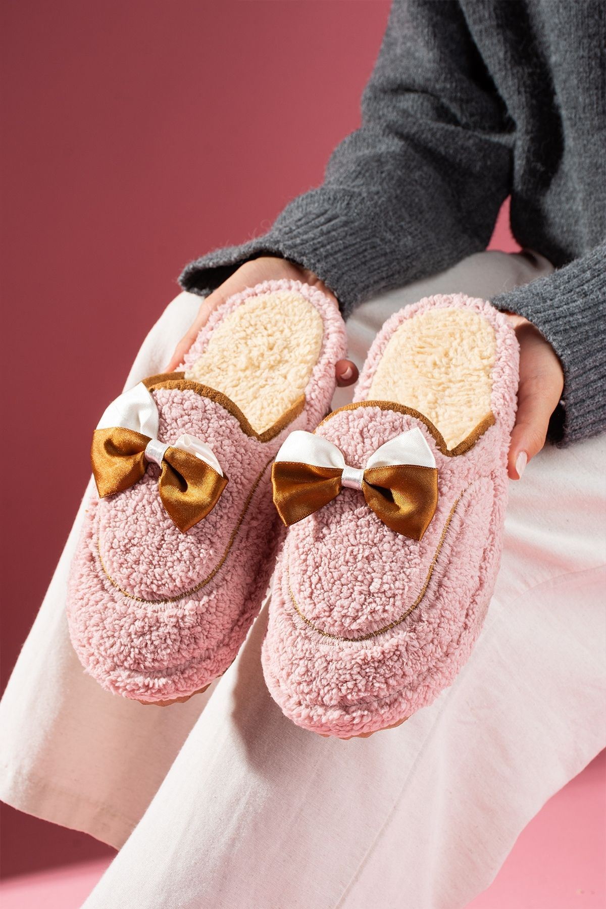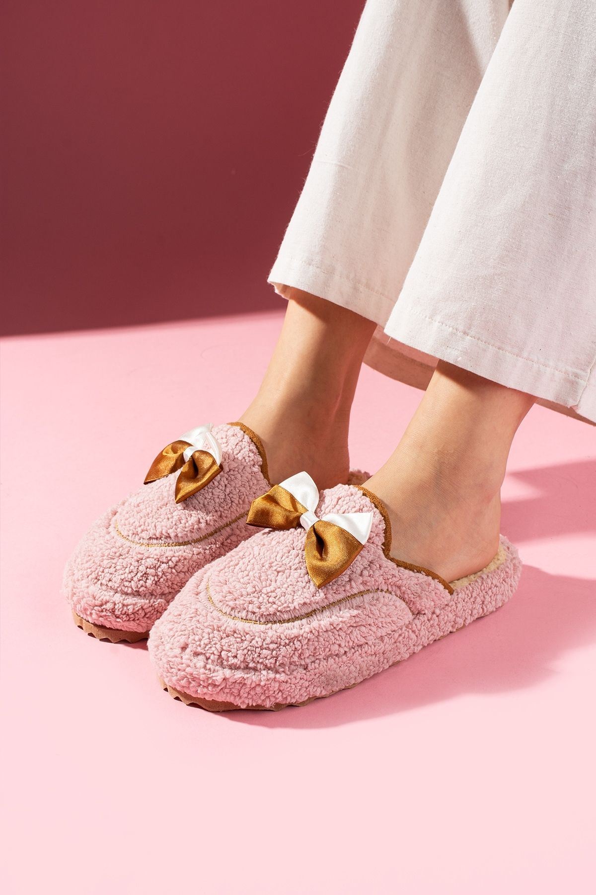 Curry Pudra Fiyonklu Saraç Detaylı Sessiz Taban Ev Terliği