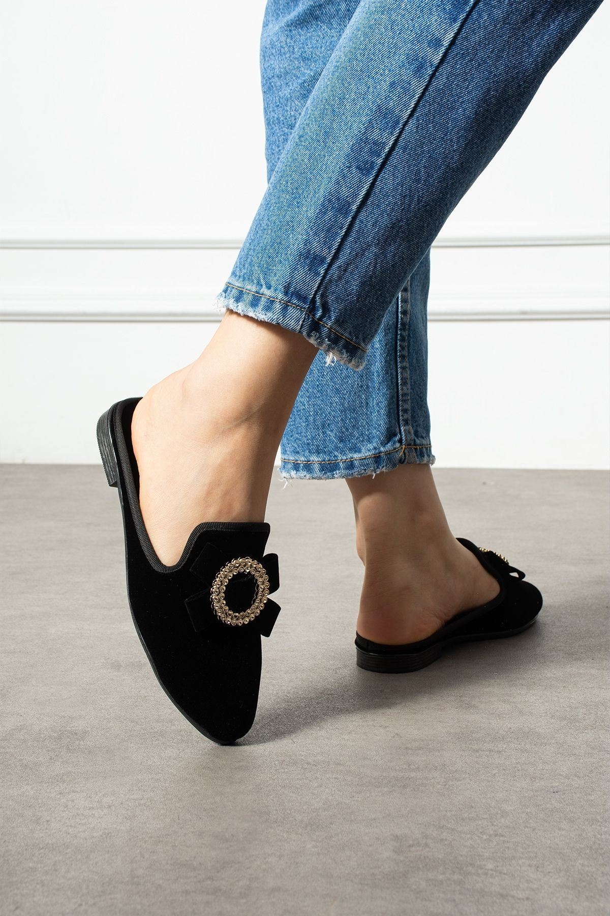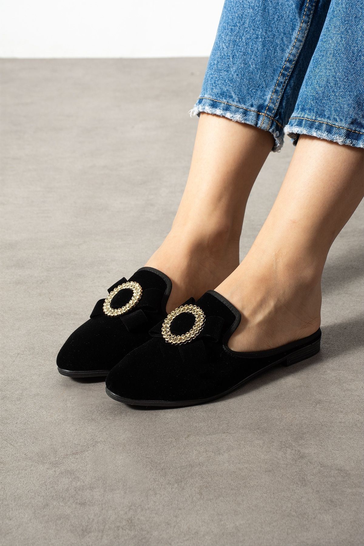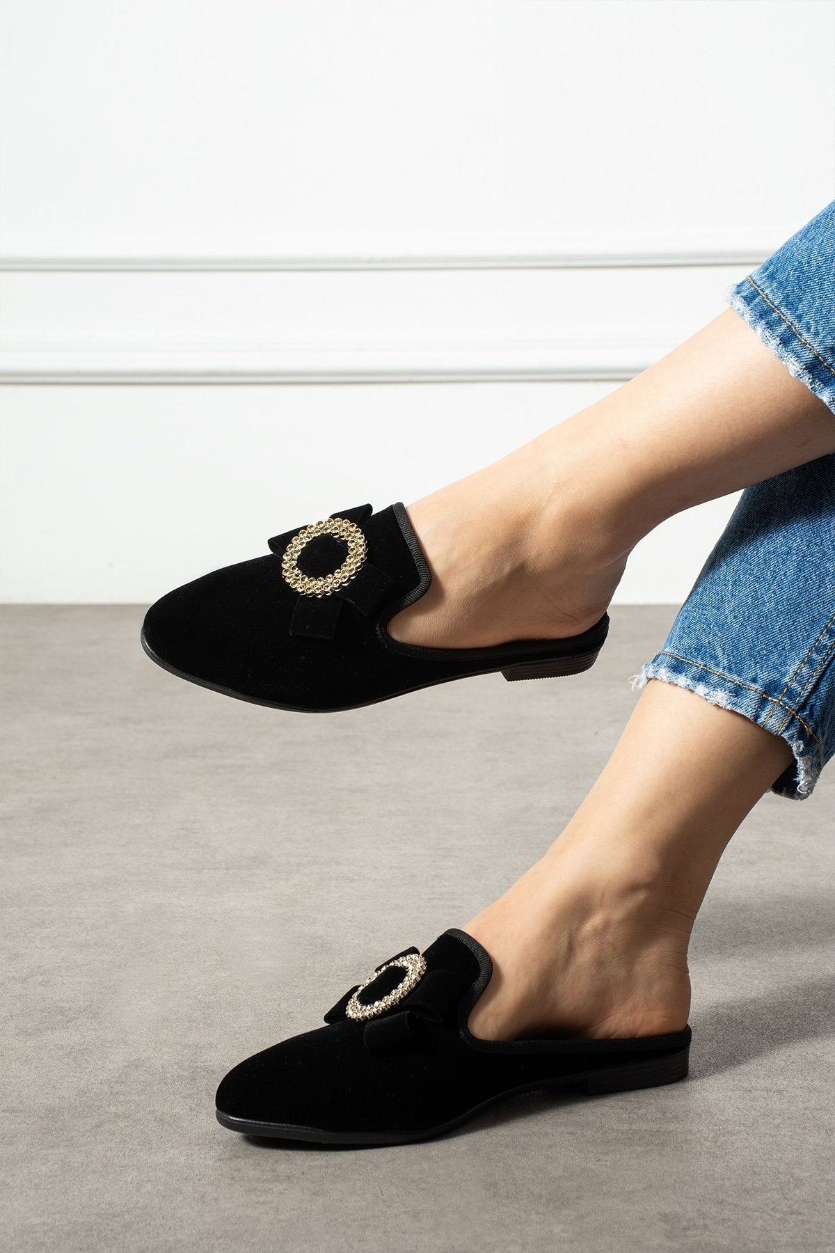 Dafi Siyah Gold Tokalı Kadife Dokulu Elegant Nişan Çeyiz Bohça Misafir Ev Terliği