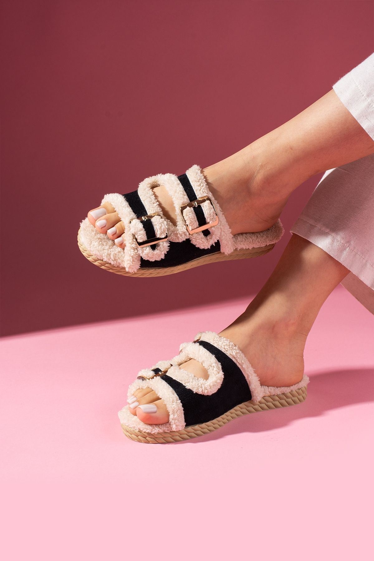 Modern ve sıcak bir tarz arayanların tercihi DANY! Tokalı şık tasarımı, peluş detaylarla buluşarak stil sahibi ve konforlu bir görünüm sunar. Hafif yapısı sayesinde gün boyu rahatça kullanılabilir. Evde ya da dışarda kullanıma uygun yapısıyla gardırobunuzun vazgeçilmezi olacak.