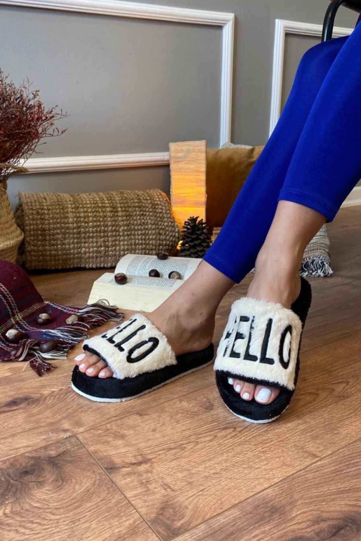 Edgar Siyah Hello Baskılı Ev Terlik