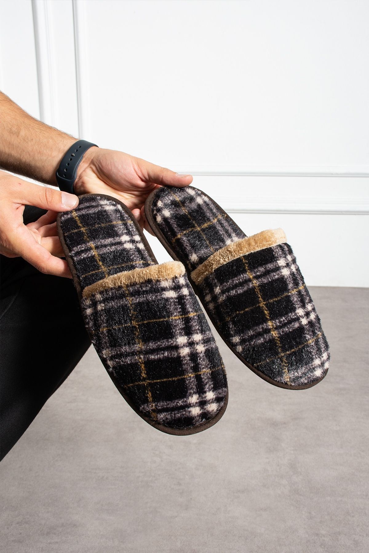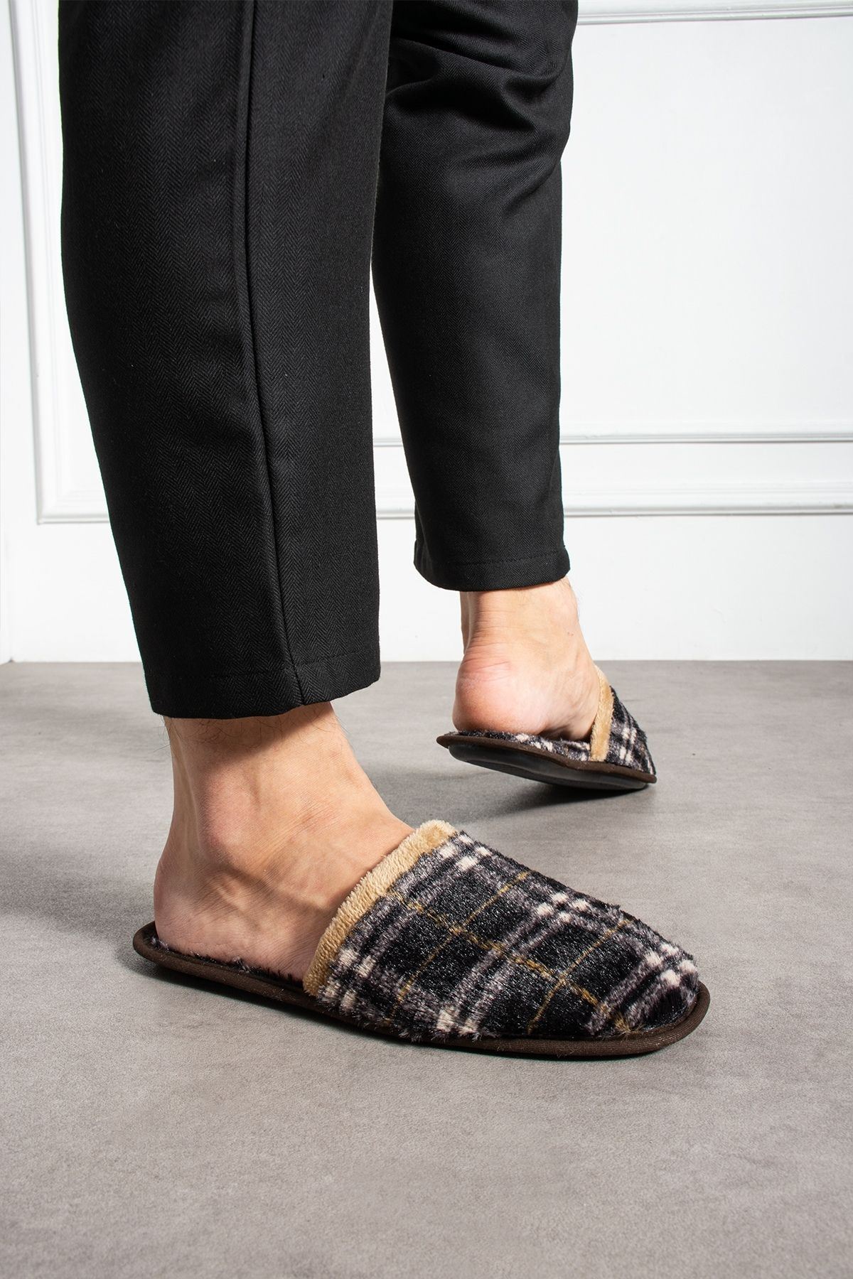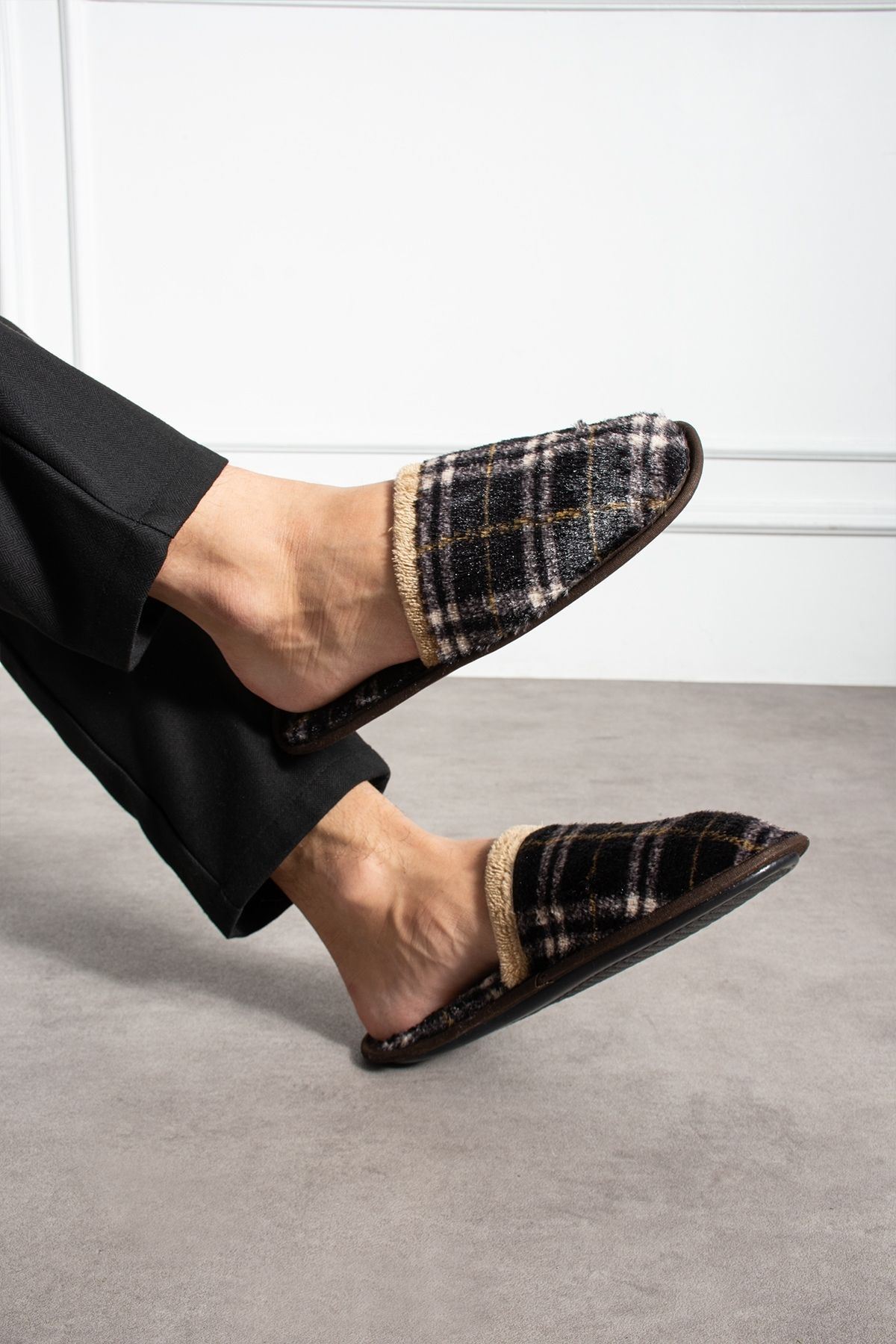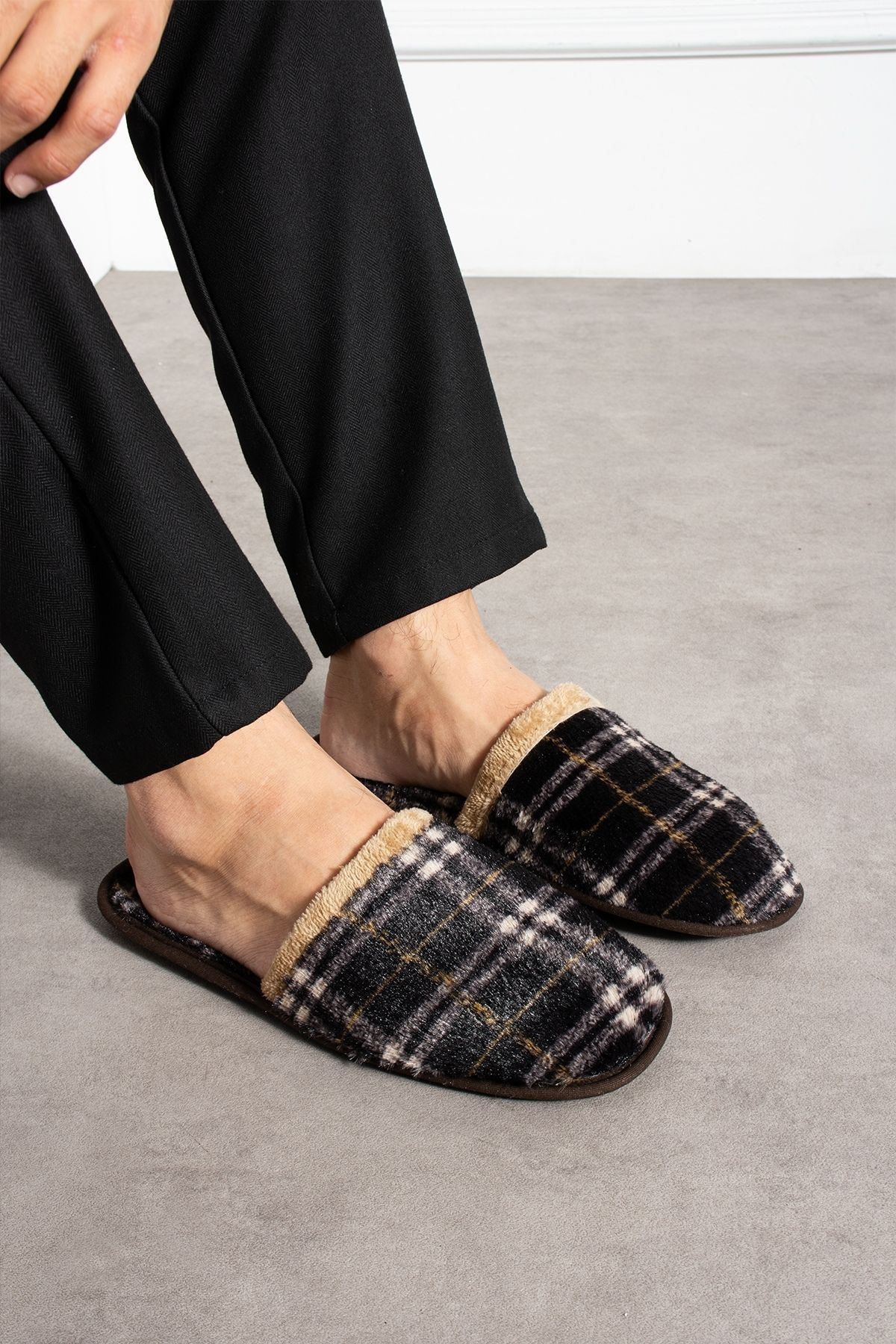 Florida Siyah Ekose Desenli Erkek Ev Terliği