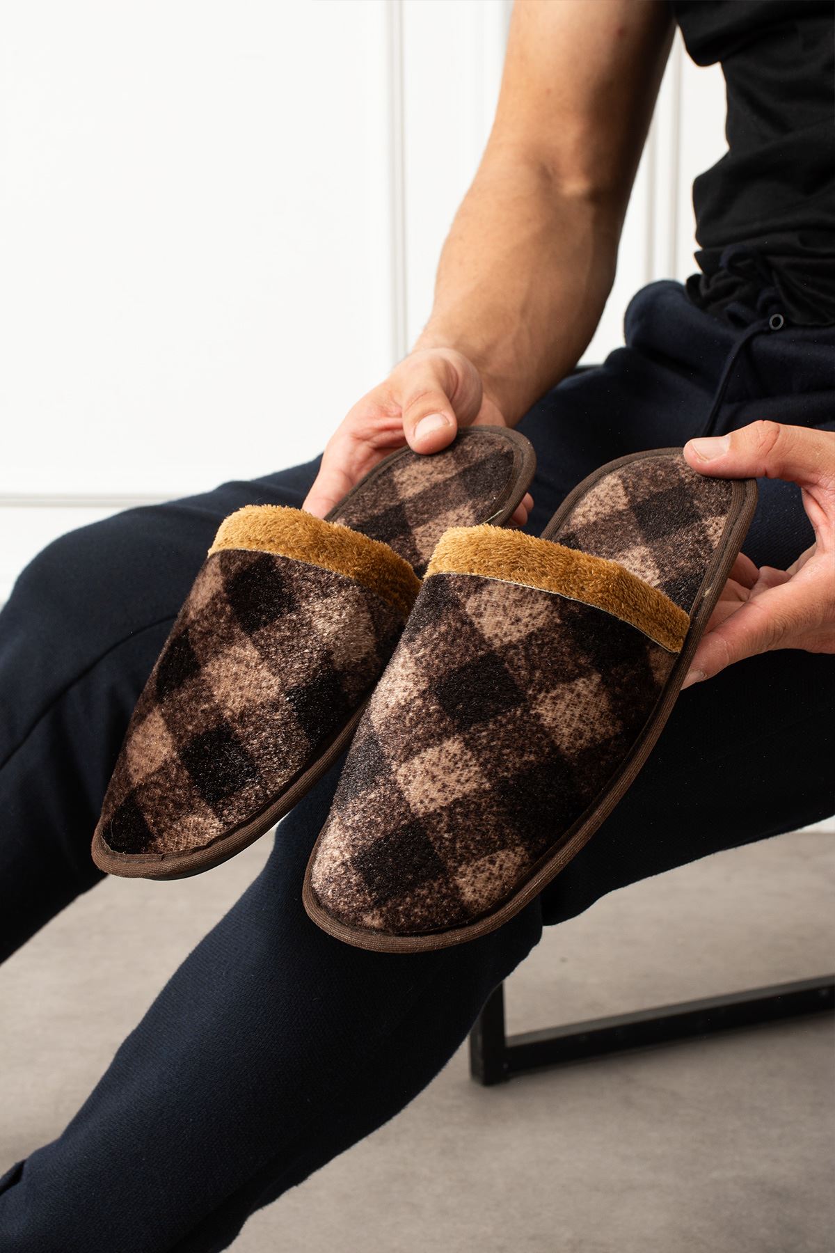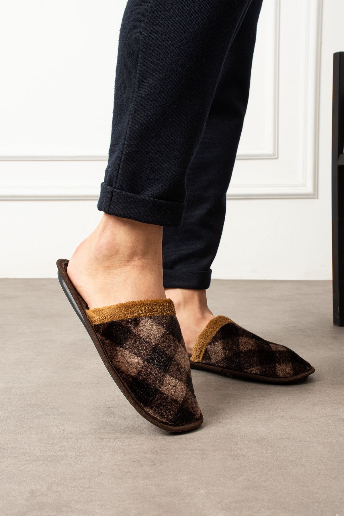 Florida Taba Erkek Çapraz Kare Desenli Ev Terliğ