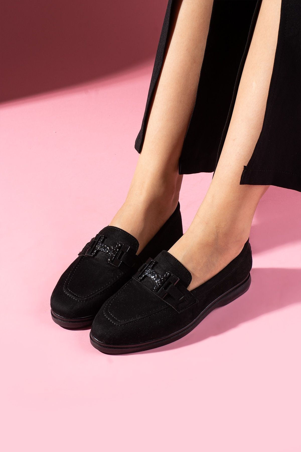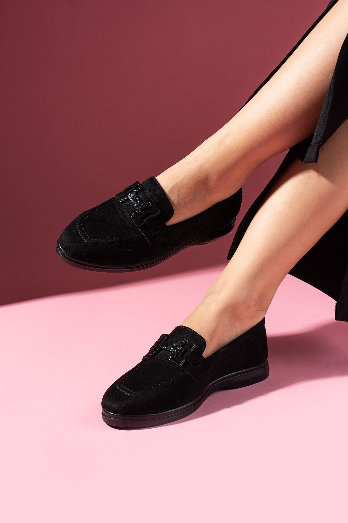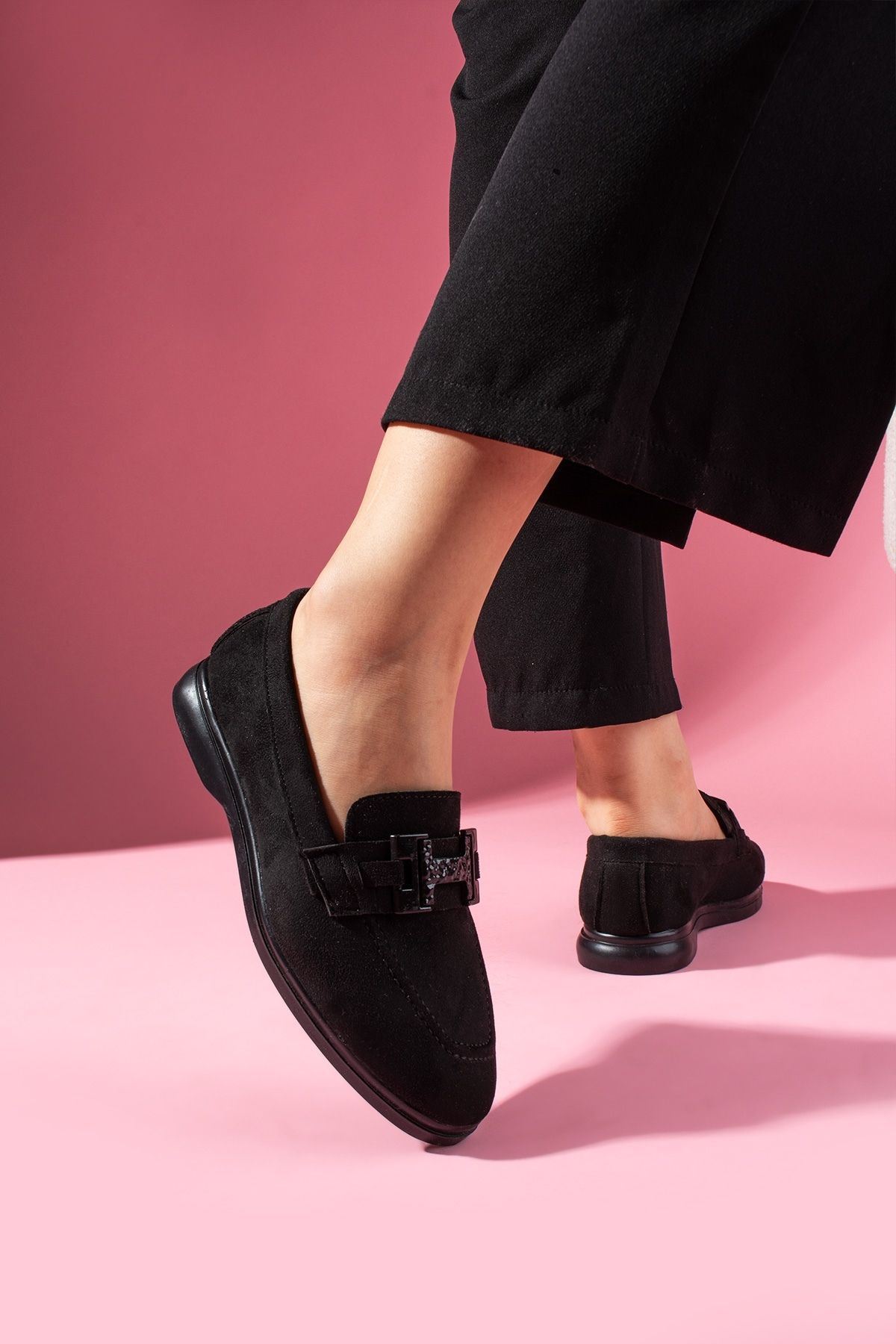 Herkon Siyah Süet Tokalı Loafer Babet Günlük Ayakkabı
