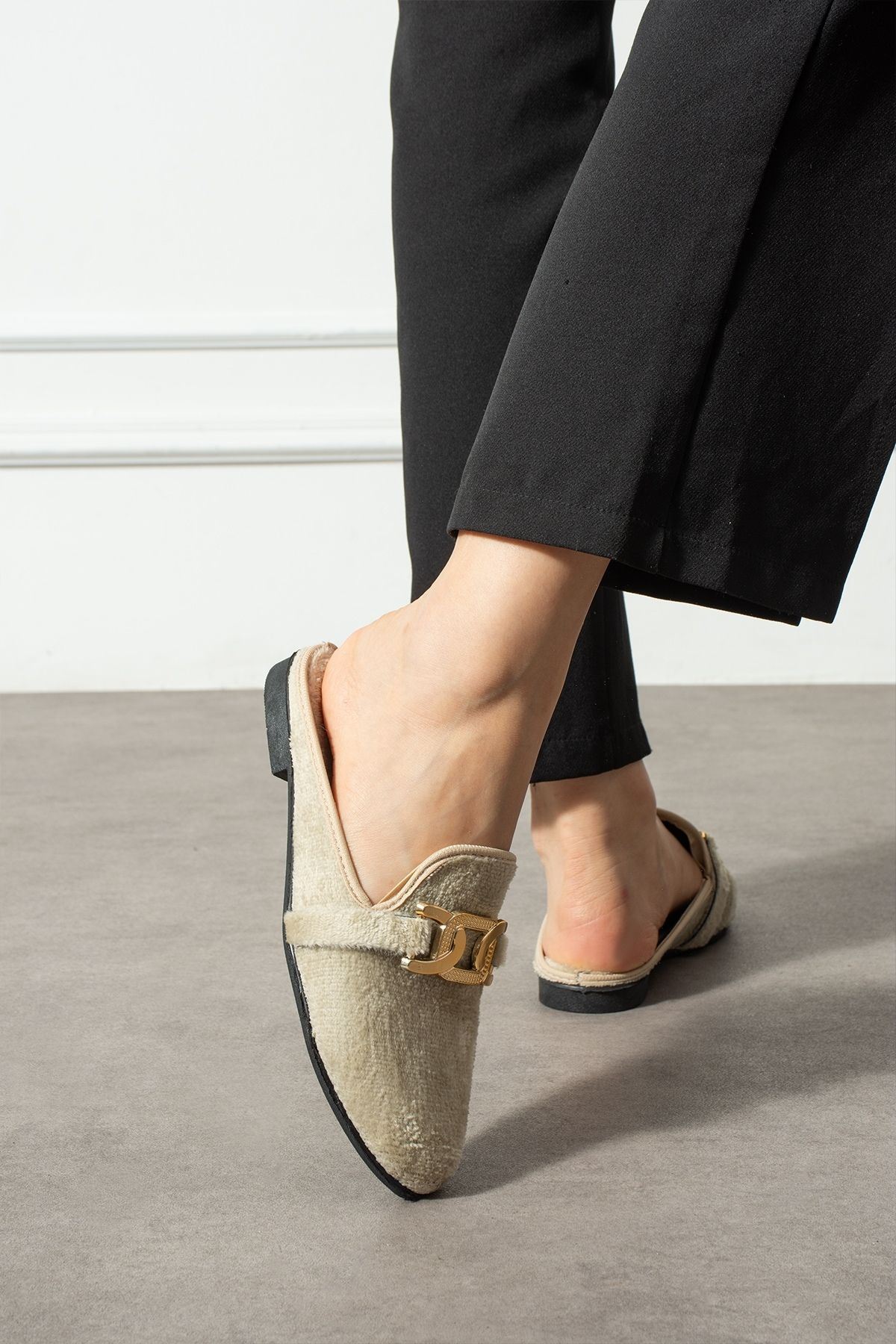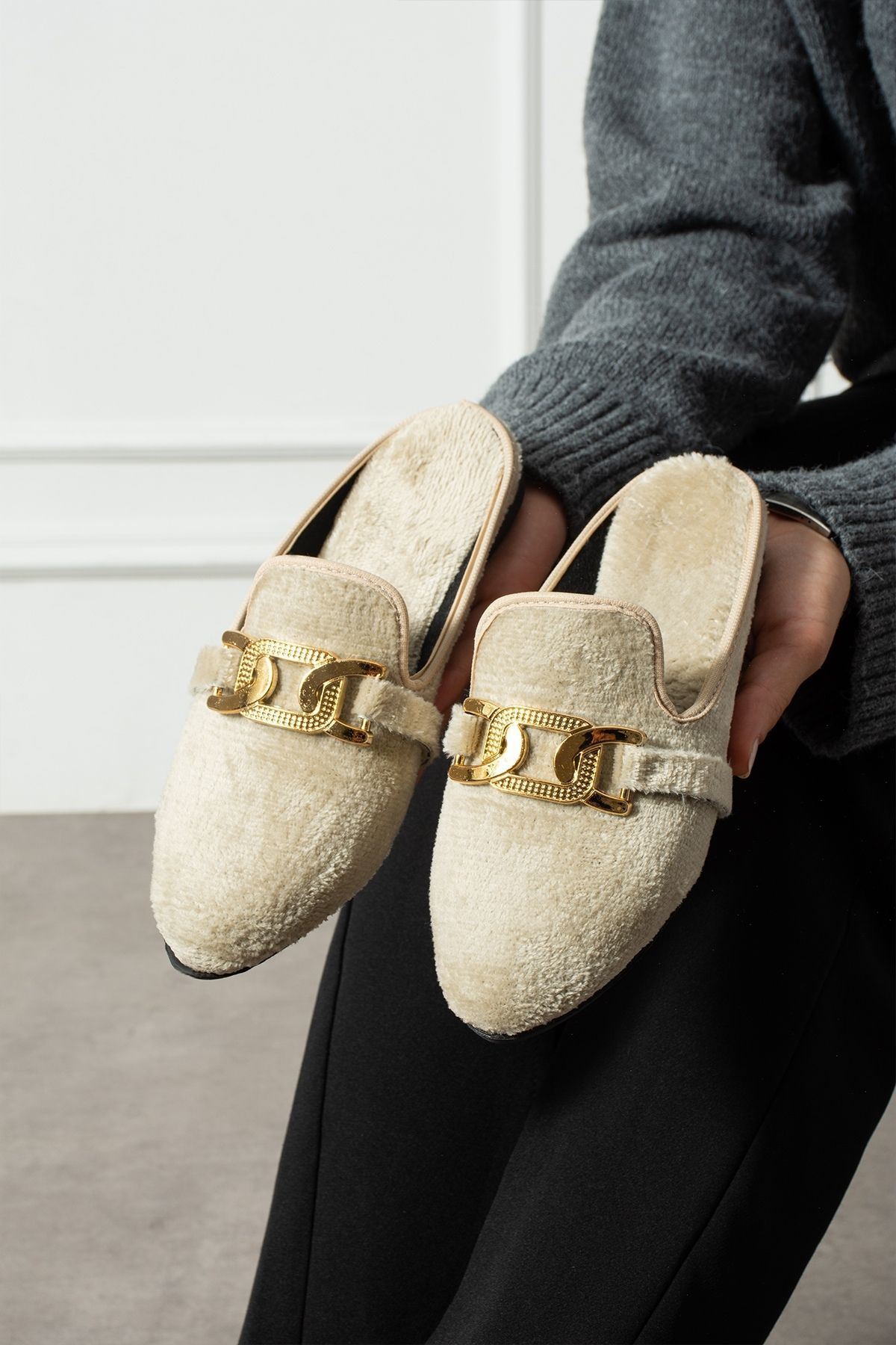 Lavi Bej Kısa Tüylü Elegant Nişan Çeyiz Bohça Misafir Ev Terliği