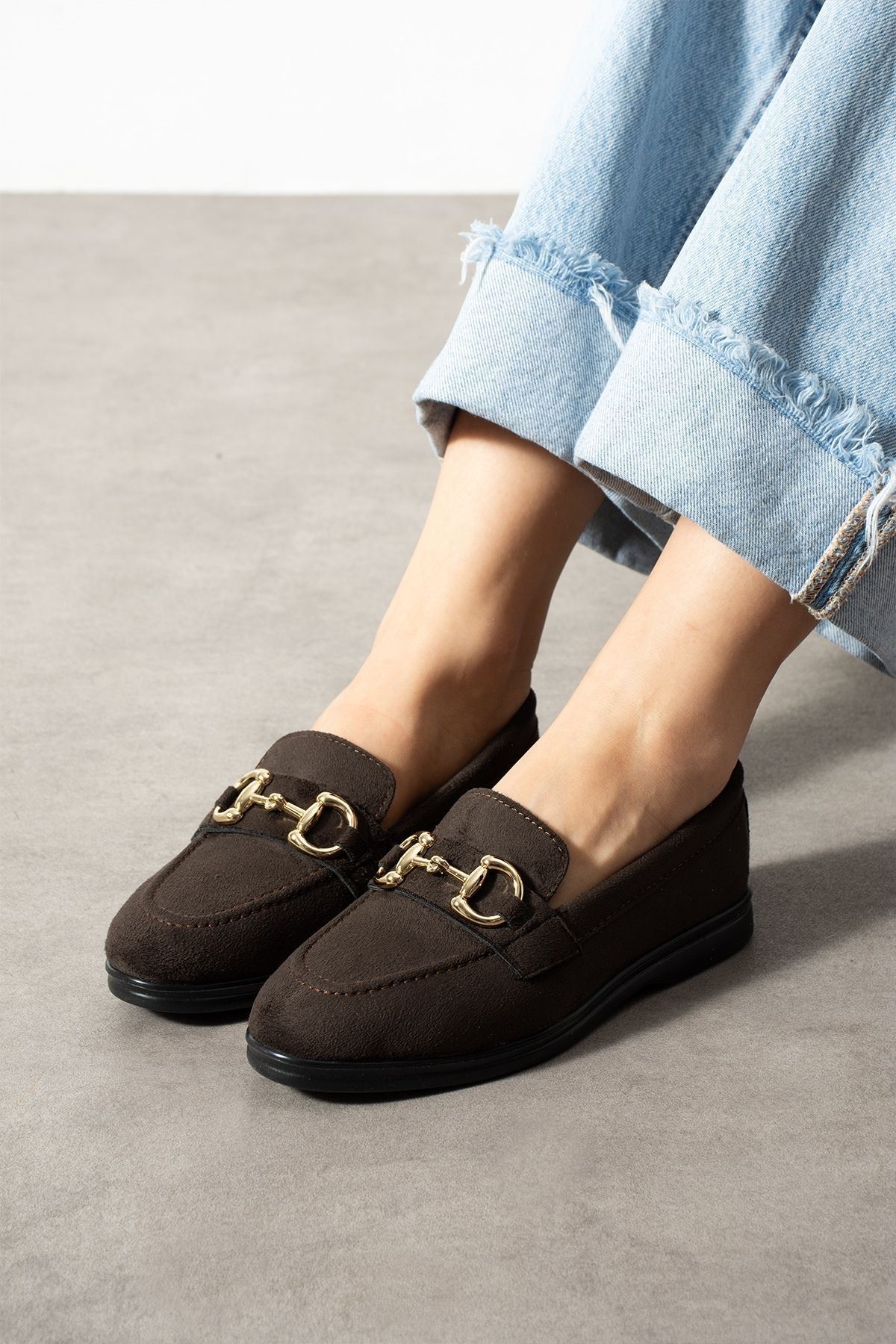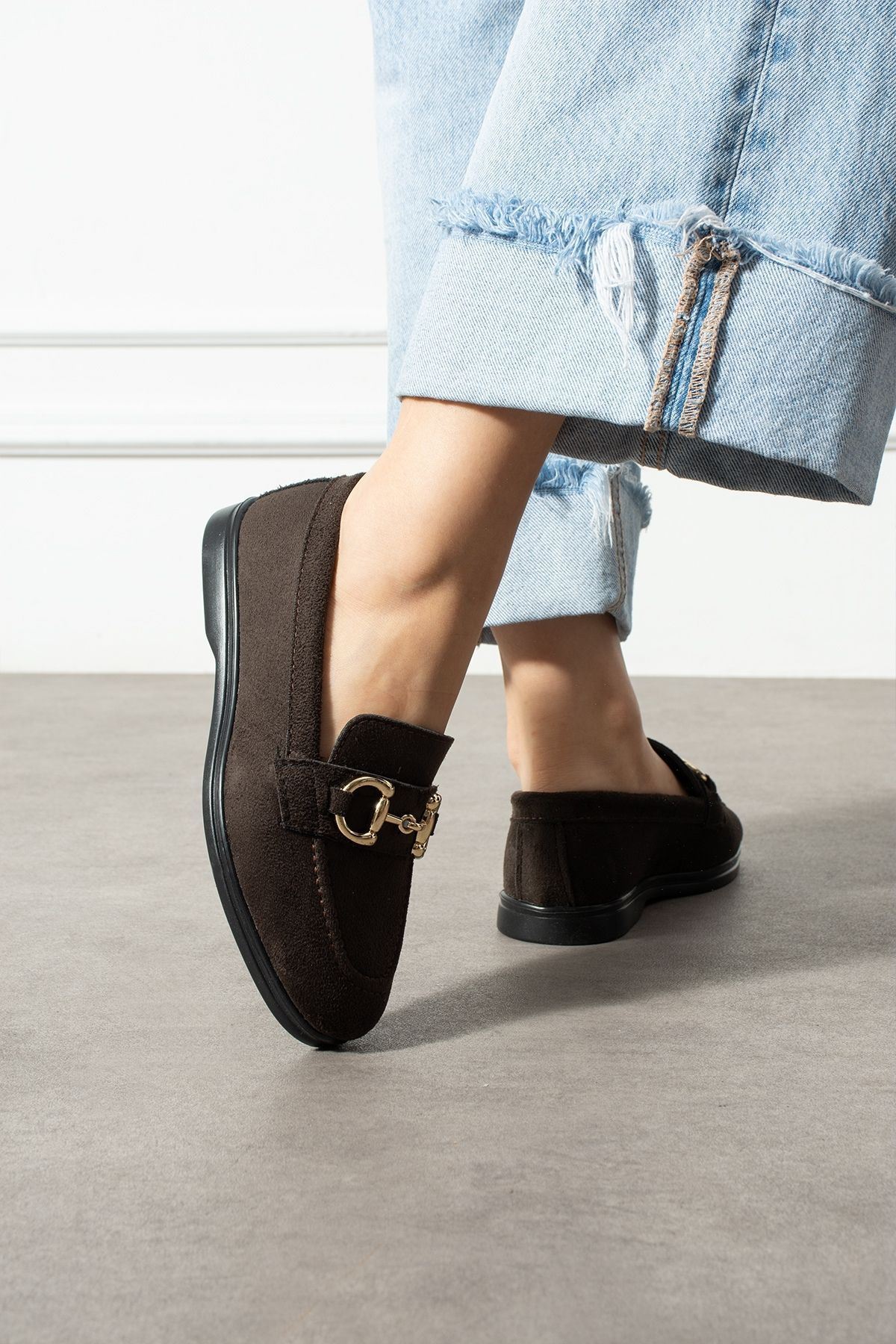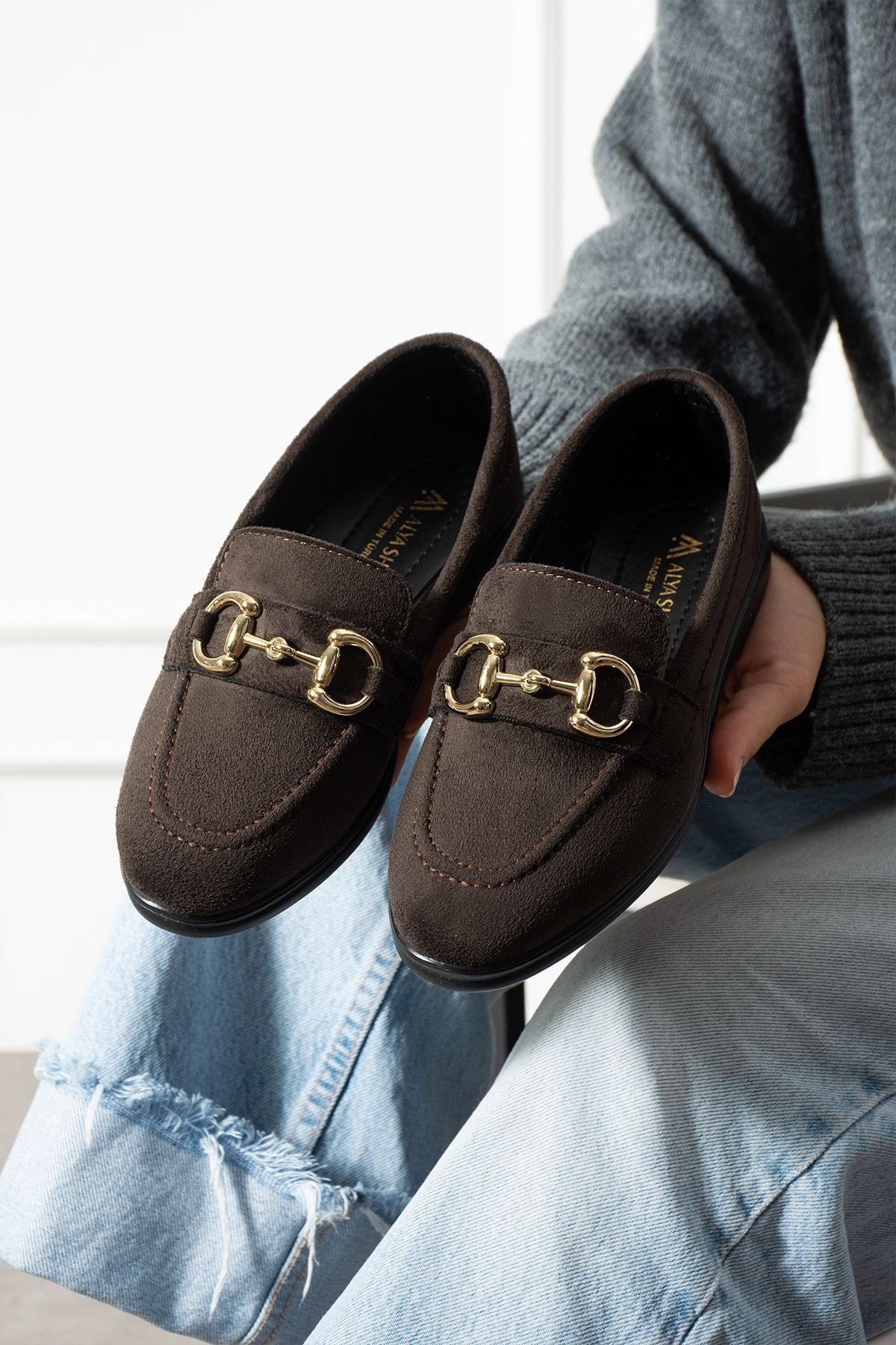 Lofita Kahverengi Süet Tokalı Loafer Babet Günlük Ayakkabı