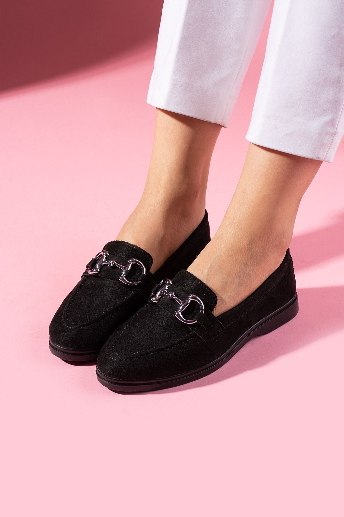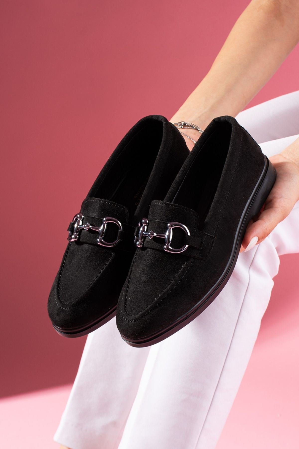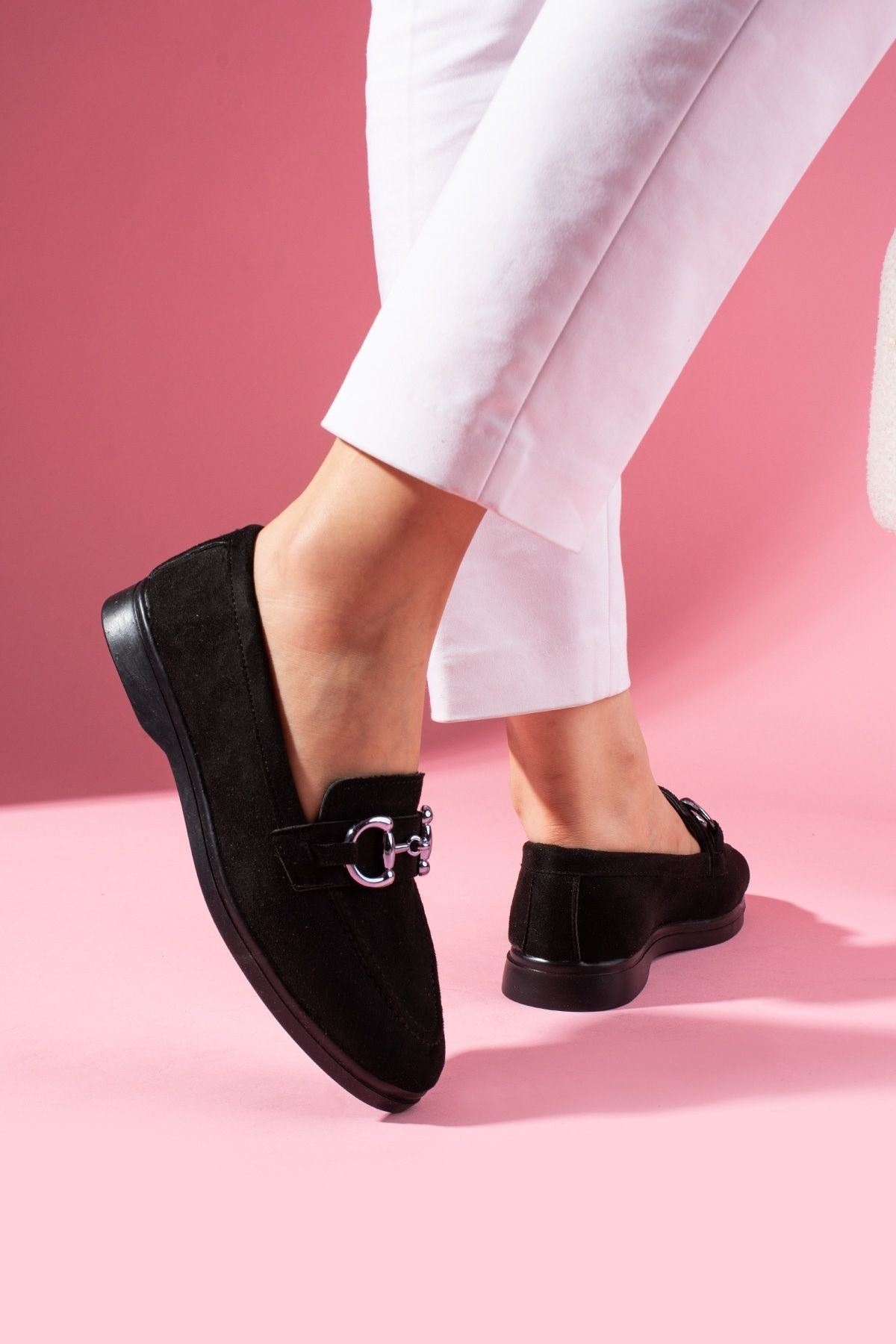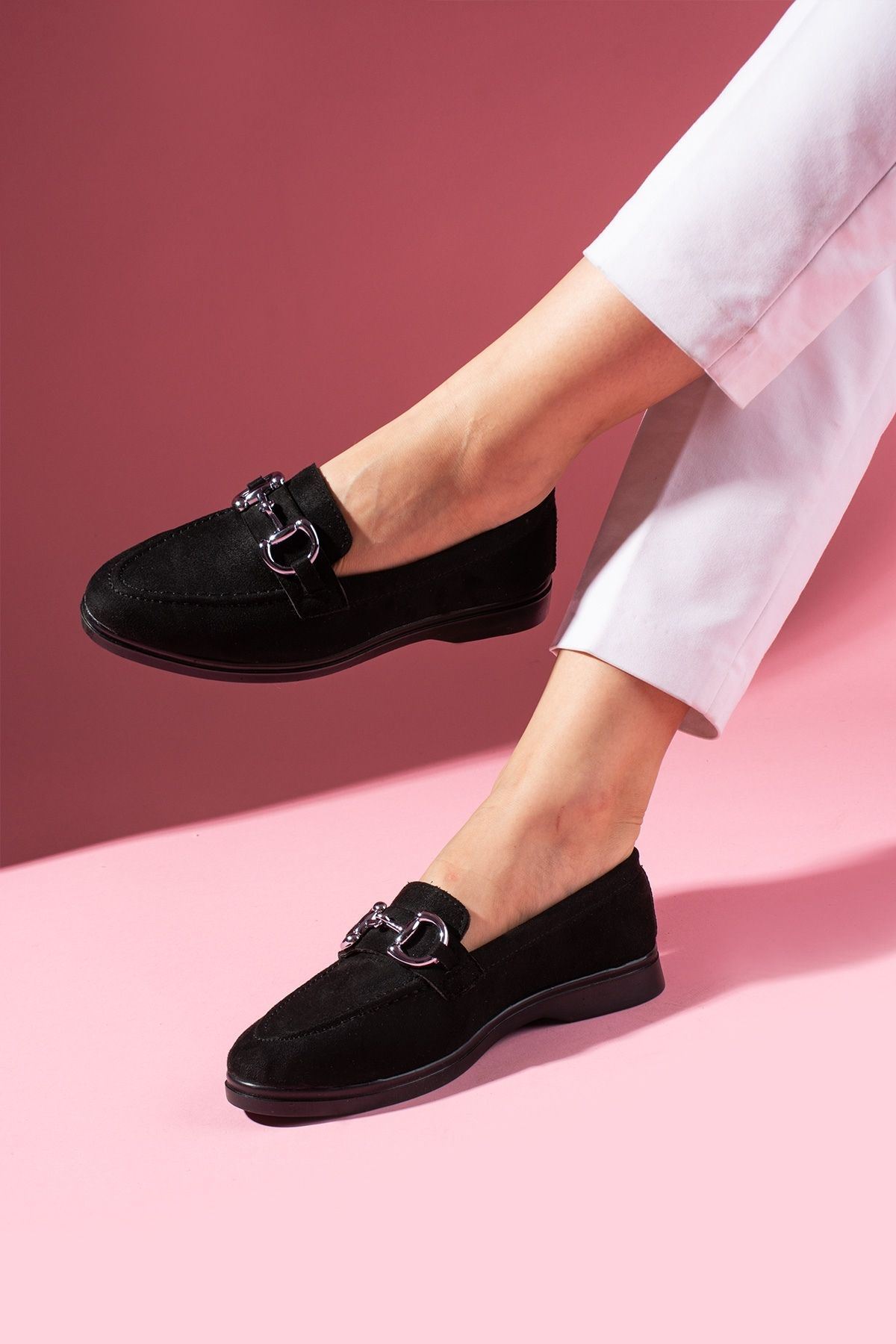 Lofita Siyah Süet Tokalı Loafer Babet Günlük Ayakkabı