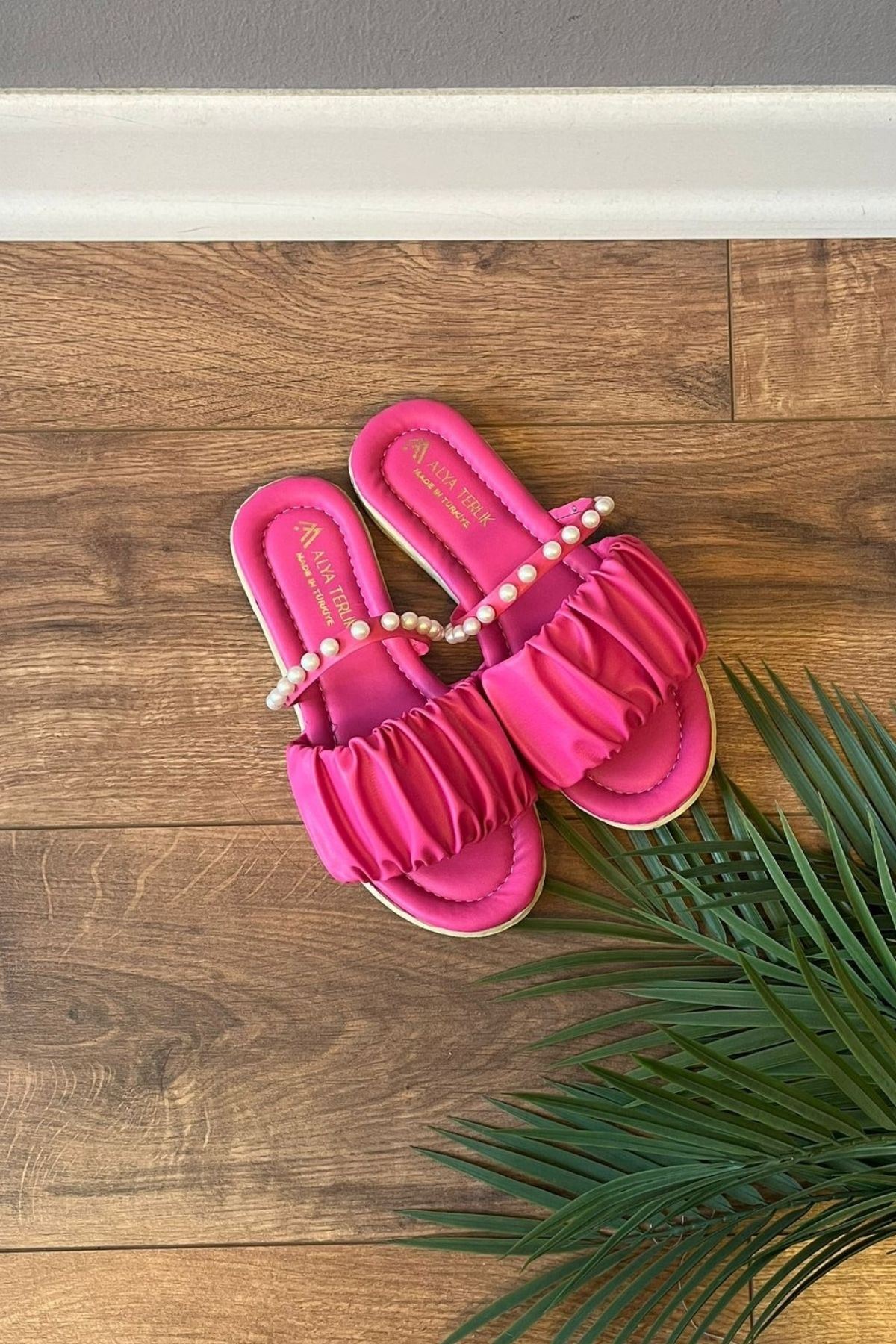 Loni Fuşya İnci Kemer Detaylı Yüksek Tabanlı Terlik