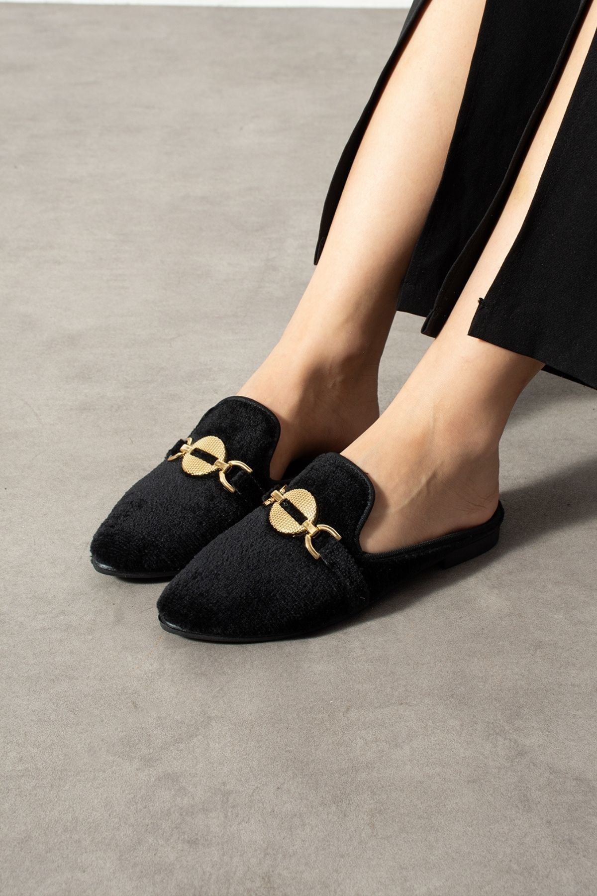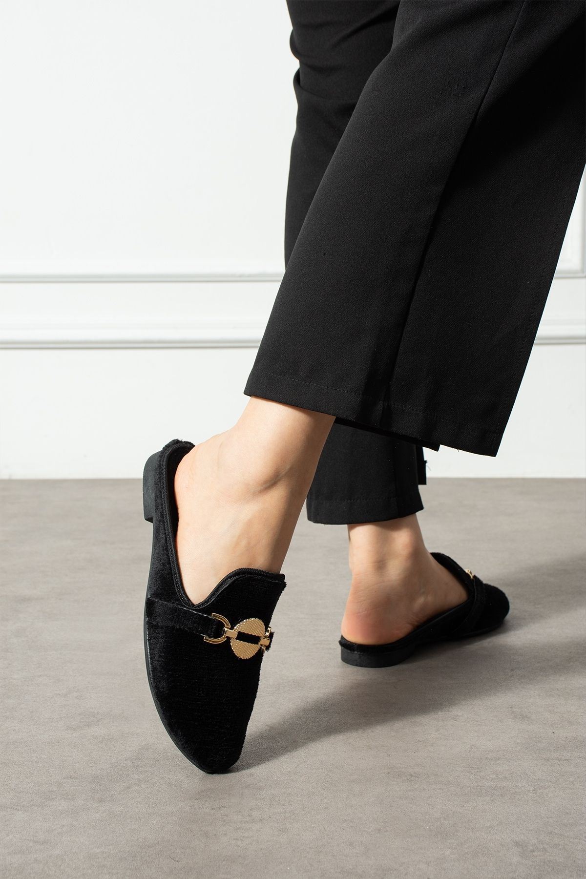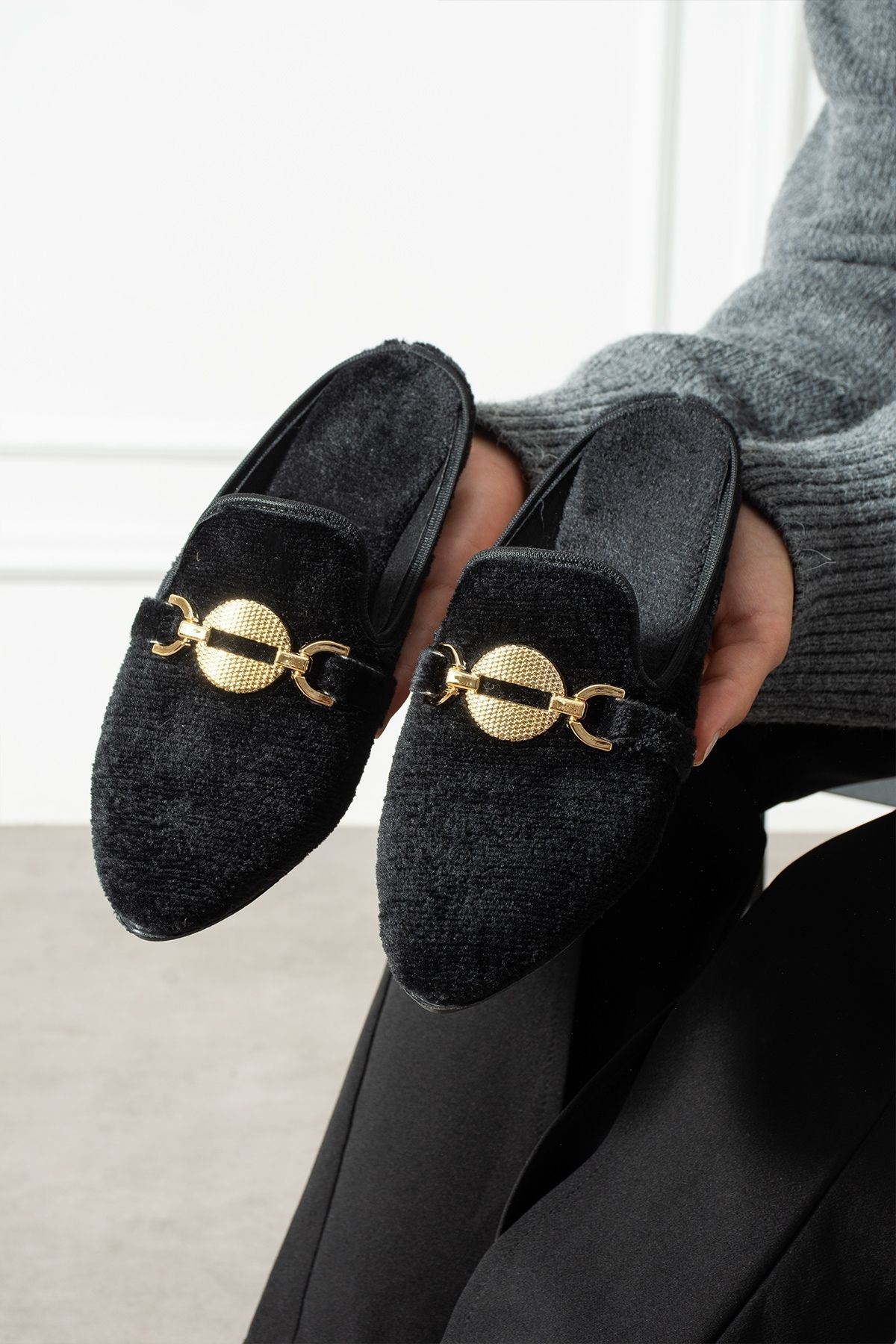 Lunia Siyah Kısa Tüylü Elegant Nişan Çeyiz Bohça Misafir Ev Terliği