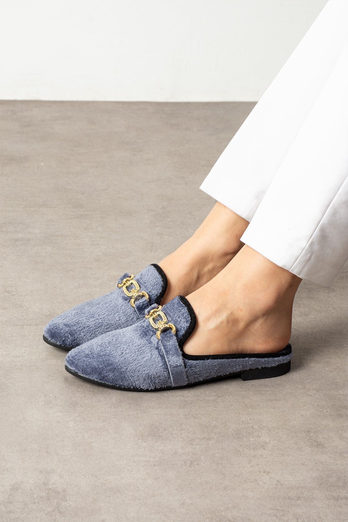Lunor Gri Kısa Tüylü Elegant Nişan Çeyiz Bohça Misafir Ev Terliği