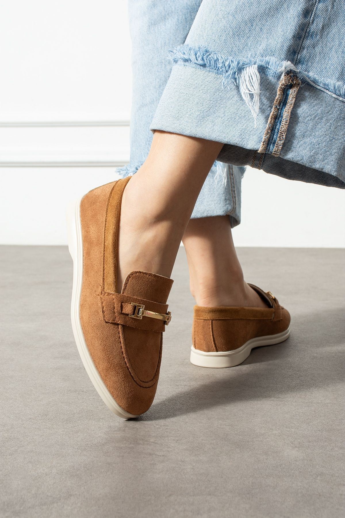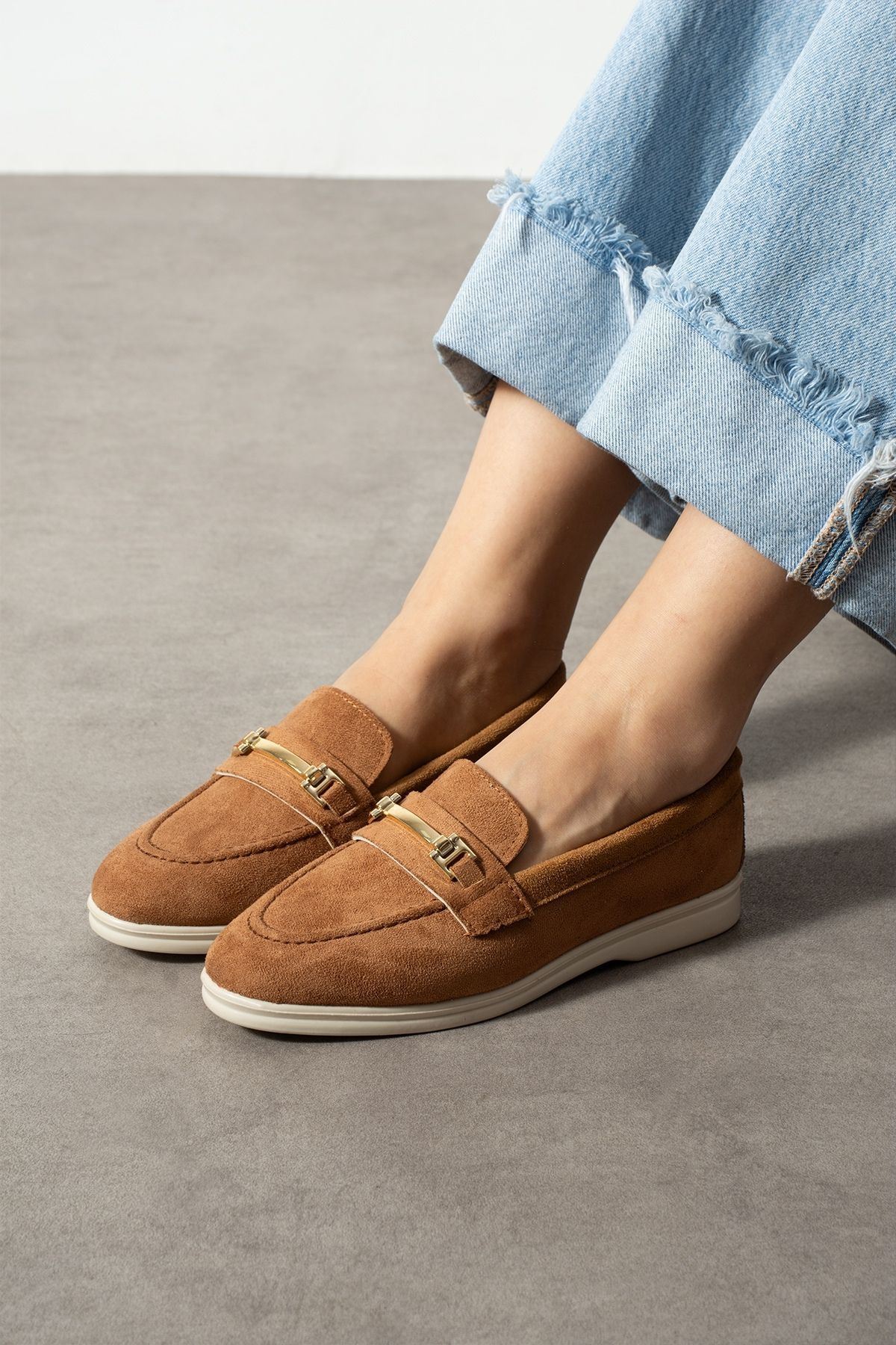 Markiz Taba Süet Tokalı Loafer Babet Günlük Ayakkabı