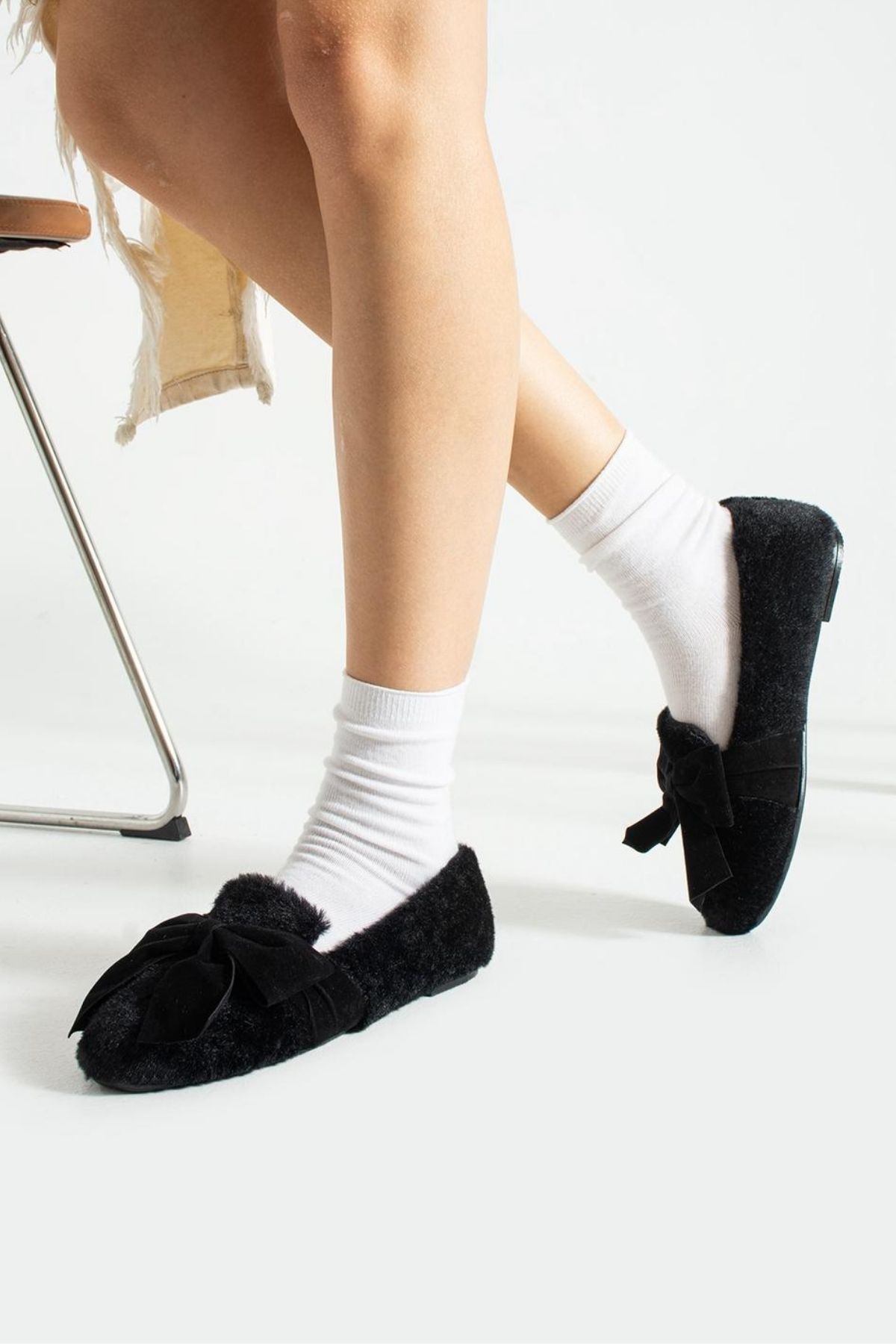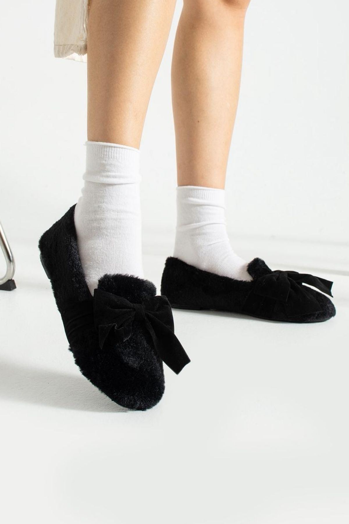Evde konforu ve zarafeti bir arada sunan bu babet model, yumuşak peluş dış yüzeyi ve zarif fiyonk detayıyla hem sıcak tutar hem stil kazandırır. Gün boyu ayağınızı saran yapısıyla, ev şıklığına özen gösterenler için ideal bir tercihtir.