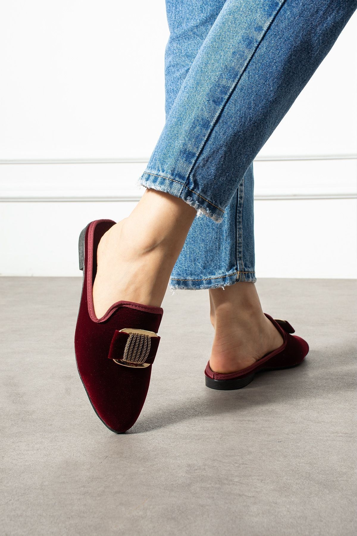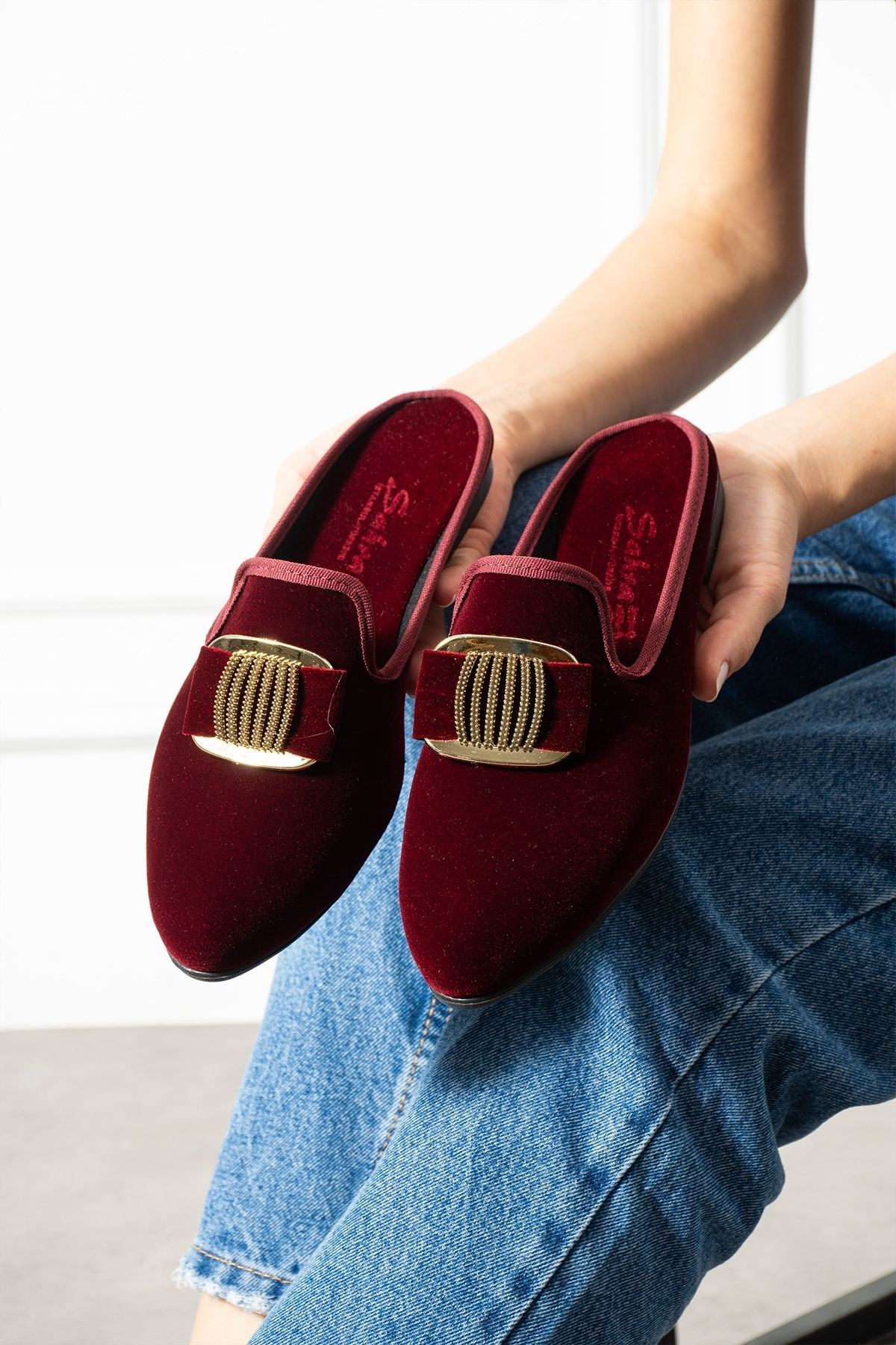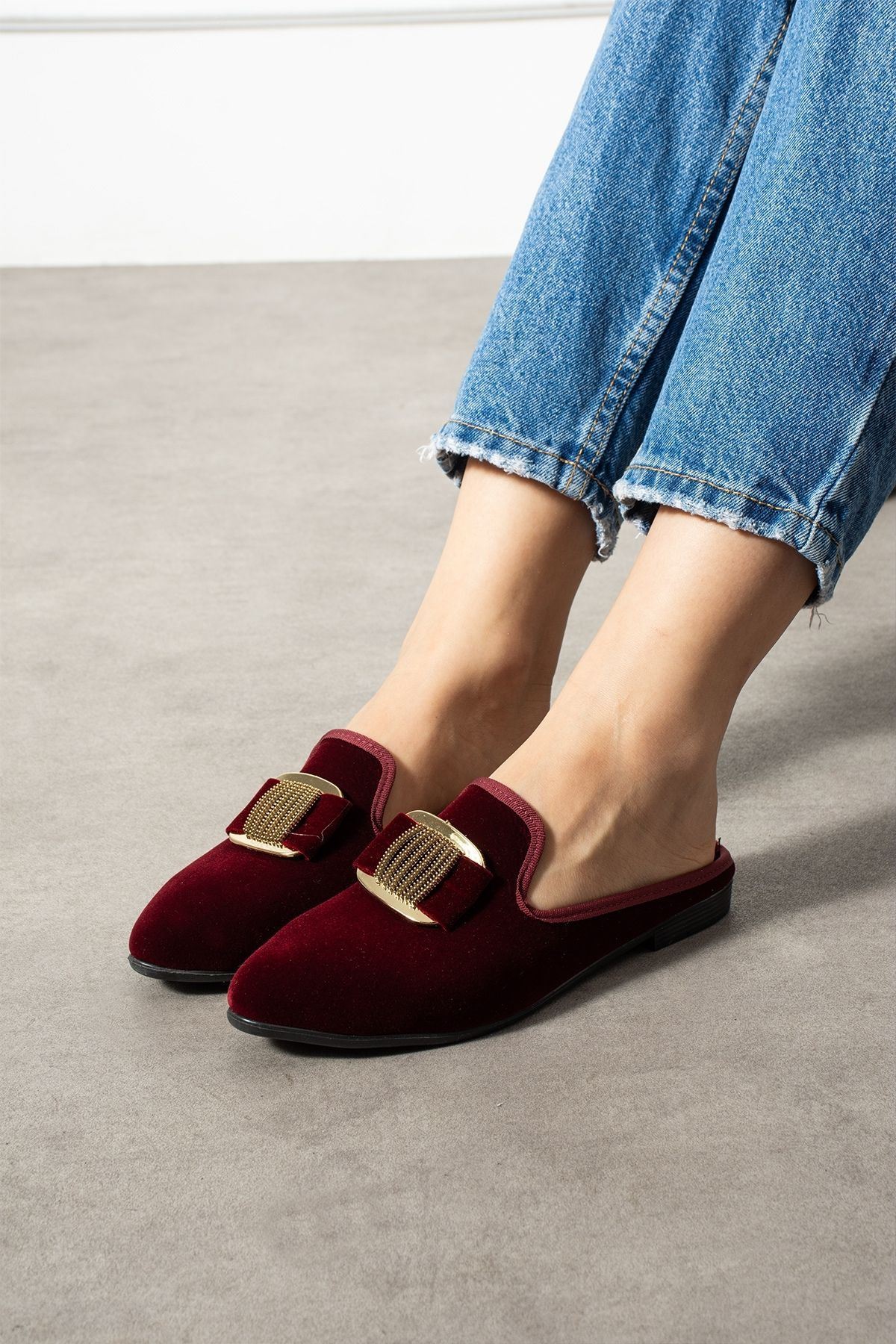 Minea Bordo Gold Tokalı Kadife Dokulu Elegant Nişan Çeyiz Bohça Misafir Ev Terliği