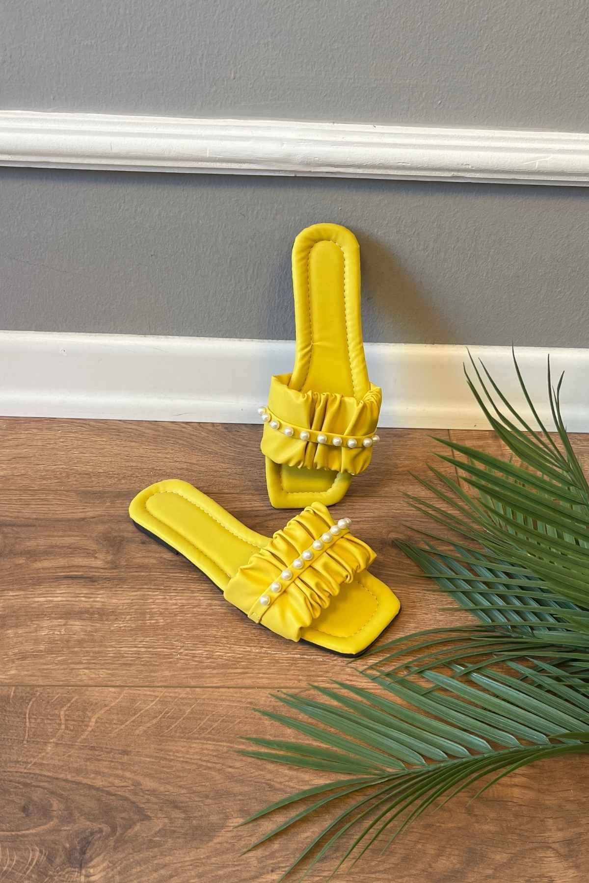 Napoli Sari İnci Taş Kemerli Büzgü Kemerli Terlik