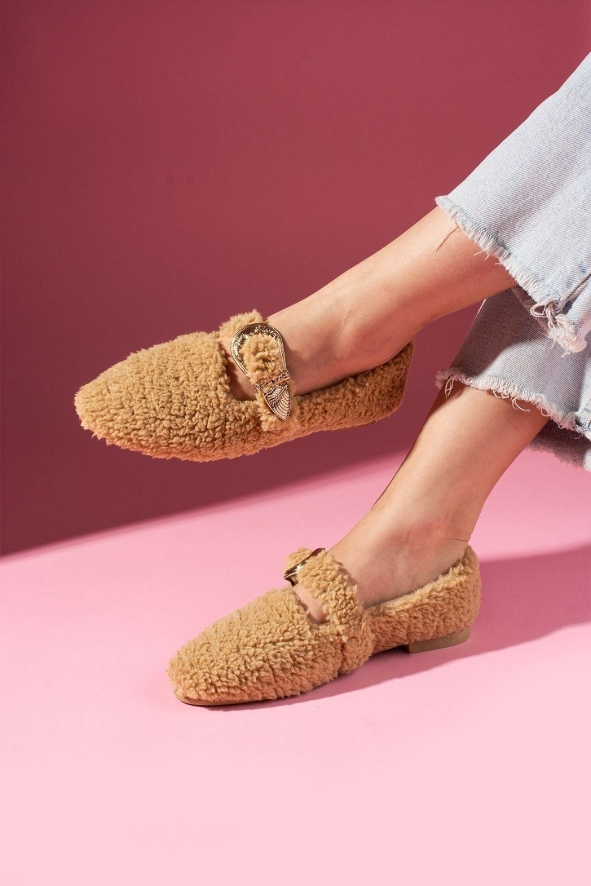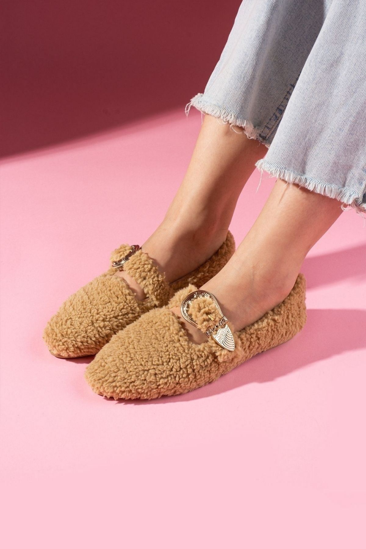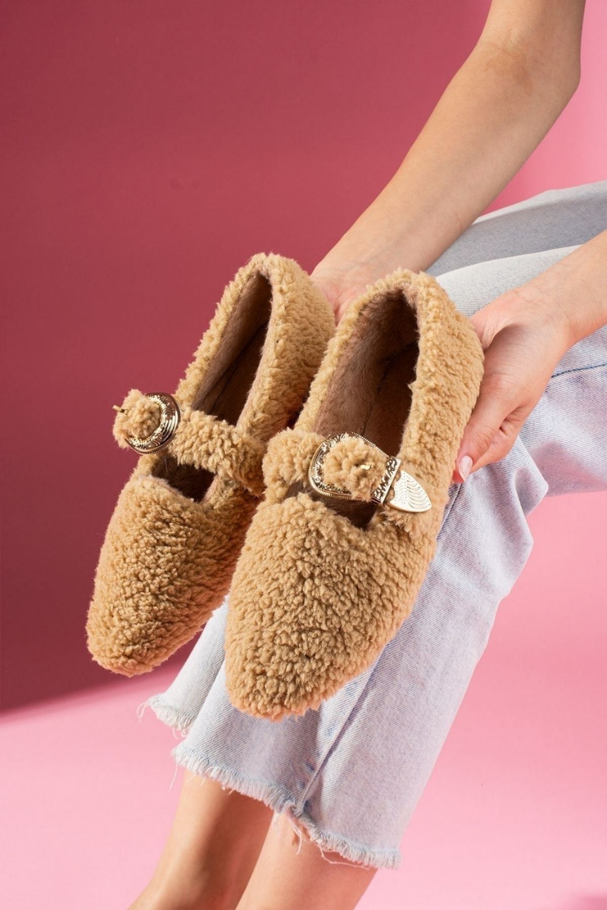 Poffina Vizon Ponponlu Saraç Detaylı Sessiz Taban Ev Terliği