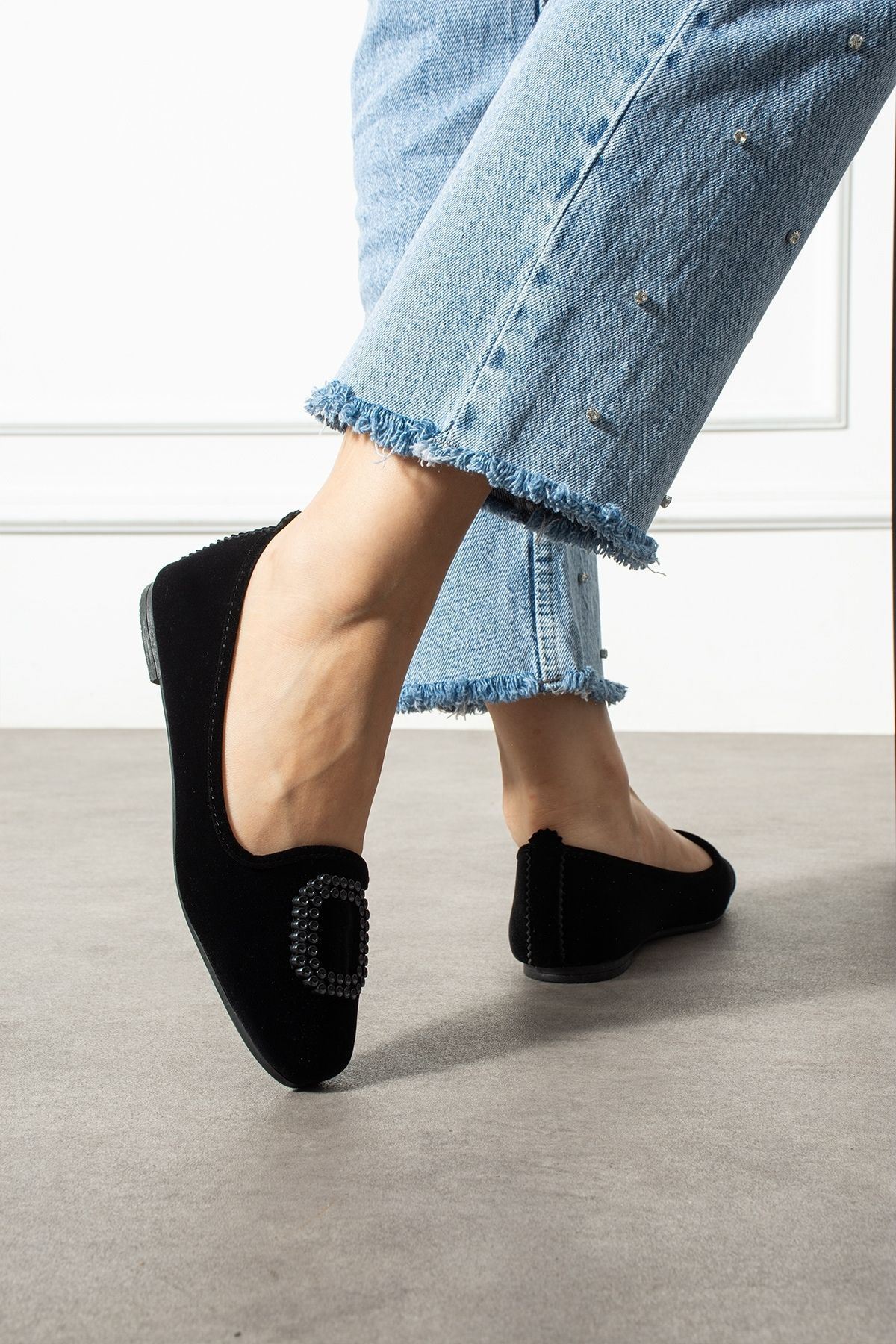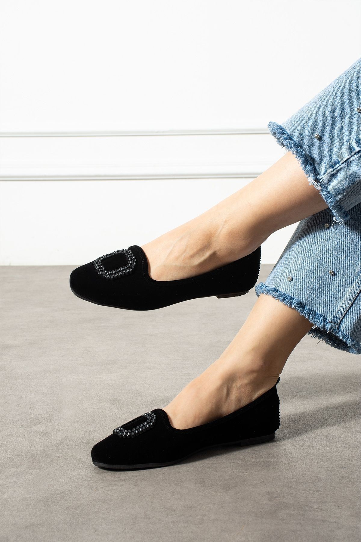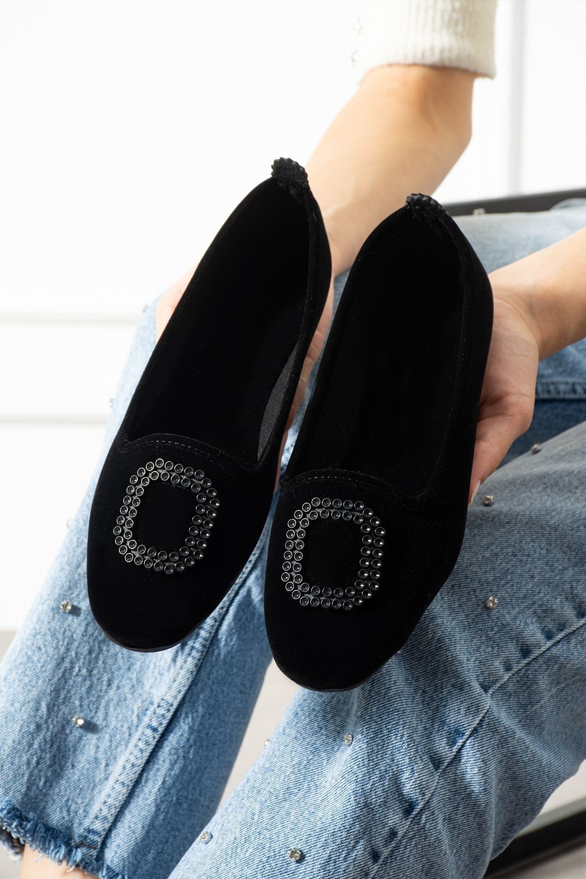 Nera Siyah Kristal Taşlı Tokalı Kadife Dokulu Elegant Nişan Çeyiz Bohça Misafir Ev Babeti
