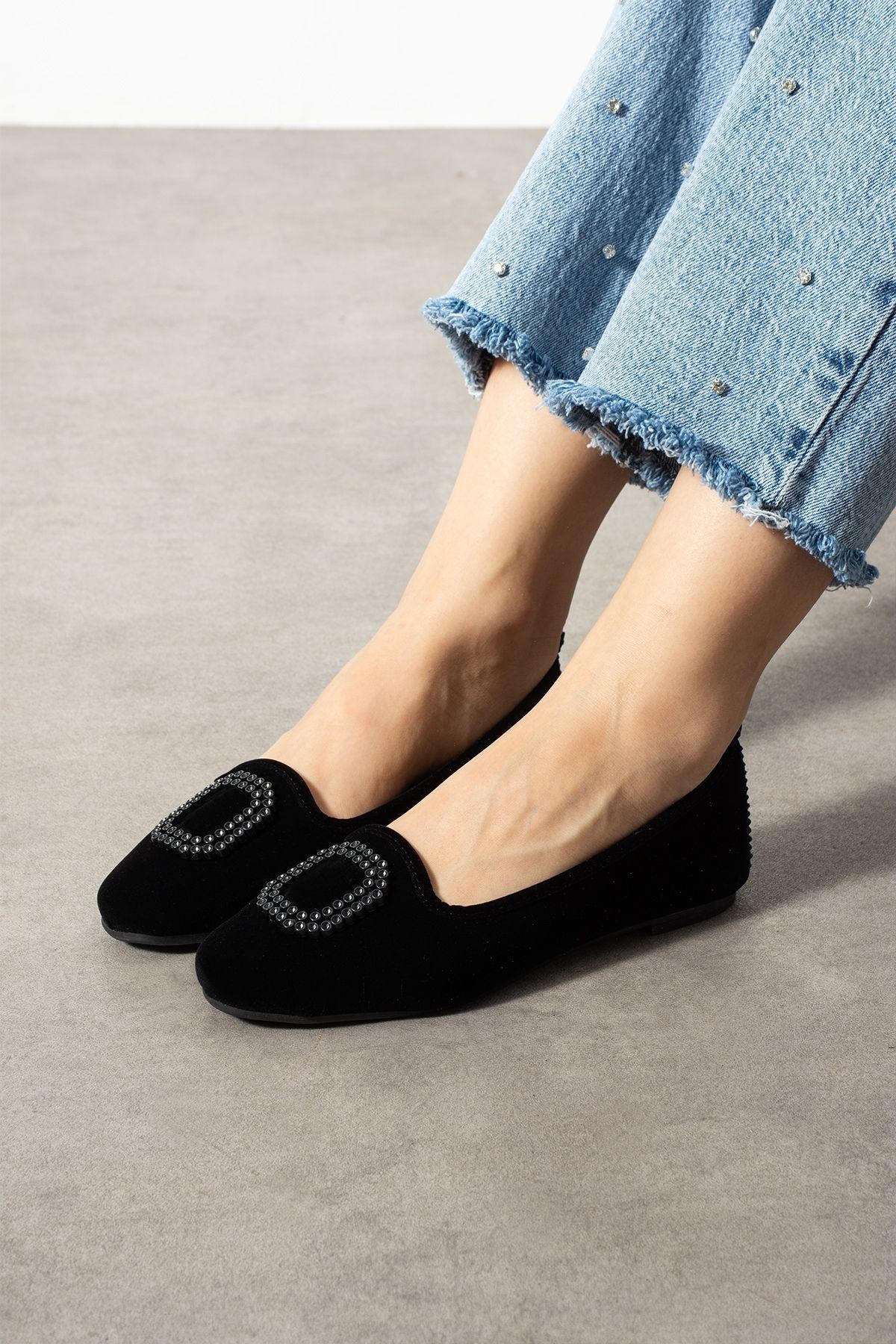 Perly Kazayağı Desenli İnci Bant Aksesuarlı Babet