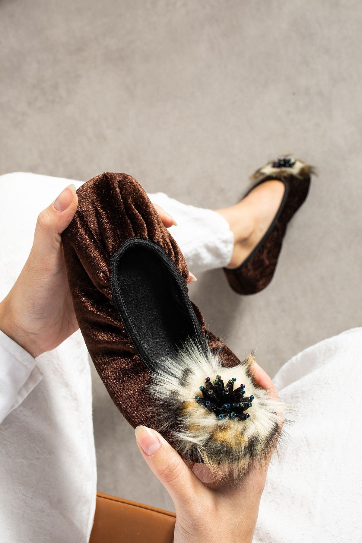 PİKY, çantanıza kolayca sığacak kadar hafif ve katlanabilir yapısıyla, her an yanınızda taşıyabileceğiniz şık bir pisi pisi modelidir. Gösterişli taş detayı ve yumuşak tüylü süslemesiyle evde ya da seyahatte stilinizi tamamlar. Yumuşak kumaş yapısı sayesinde gün boyu konfor sağlar. Özellikle misafirlikte, iş yerinde ya da seyahatlerde kurtarıcı bir parça!