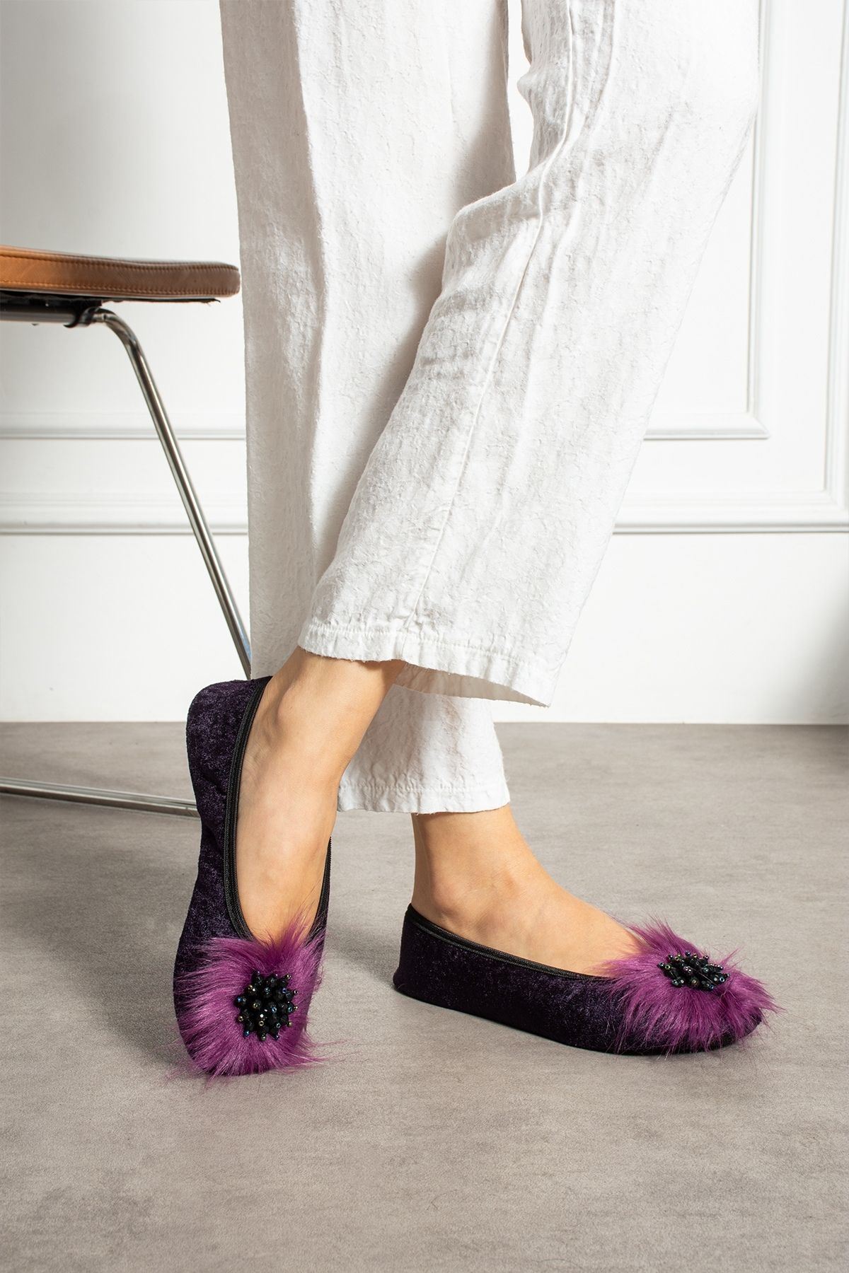 PİKY, çantanıza kolayca sığacak kadar hafif ve katlanabilir yapısıyla, her an yanınızda taşıyabileceğiniz şık bir pisi pisi modelidir. Gösterişli taş detayı ve yumuşak tüylü süslemesiyle evde ya da seyahatte stilinizi tamamlar. Yumuşak kumaş yapısı sayesinde gün boyu konfor sağlar. Özellikle misafirlikte, iş yerinde ya da seyahatlerde kurtarıcı bir parça!