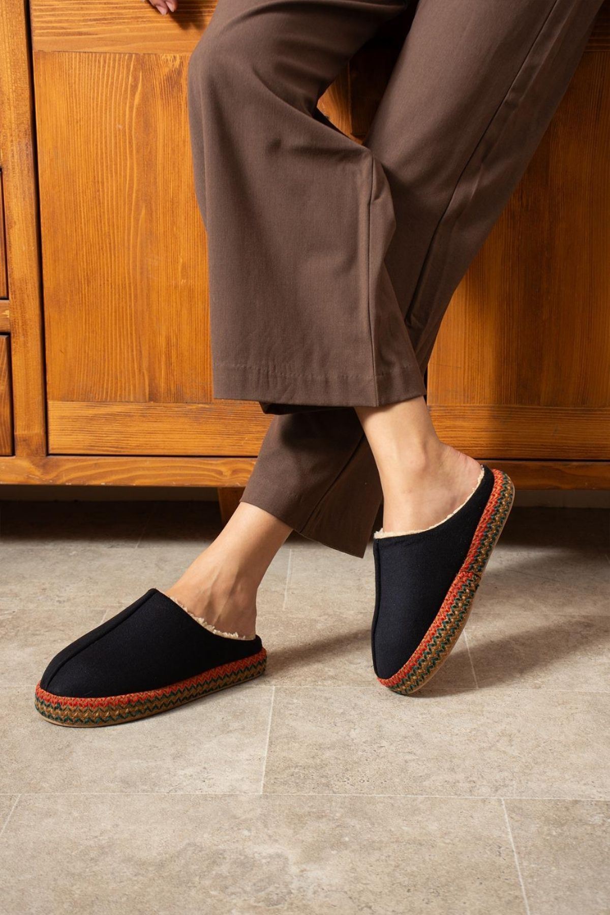 Soğuk kış günlerinde hem şıklığı hem de sıcaklığı bir arada sunan içi kürklü ev terliği, yumuşak dokusu ve konforlu yapısıyla öne çıkıyor. Tok duruşlu dış kumaşı, peluş astarı ve kaymaz tabanı sayesinde evde geçirdiğiniz her anı daha keyifli hale getirir. Renkli örgü şerit detayları ile farklı ve özgün bir stil sunarken, dayanıklı yapısı sayesinde uzun ömürlü kullanım sağlar. Kadınlara özel tasarlanan bu model, estetik görünümünün yanında ayağı tam saran kalıbıyla maksimum rahatlık sunar.
