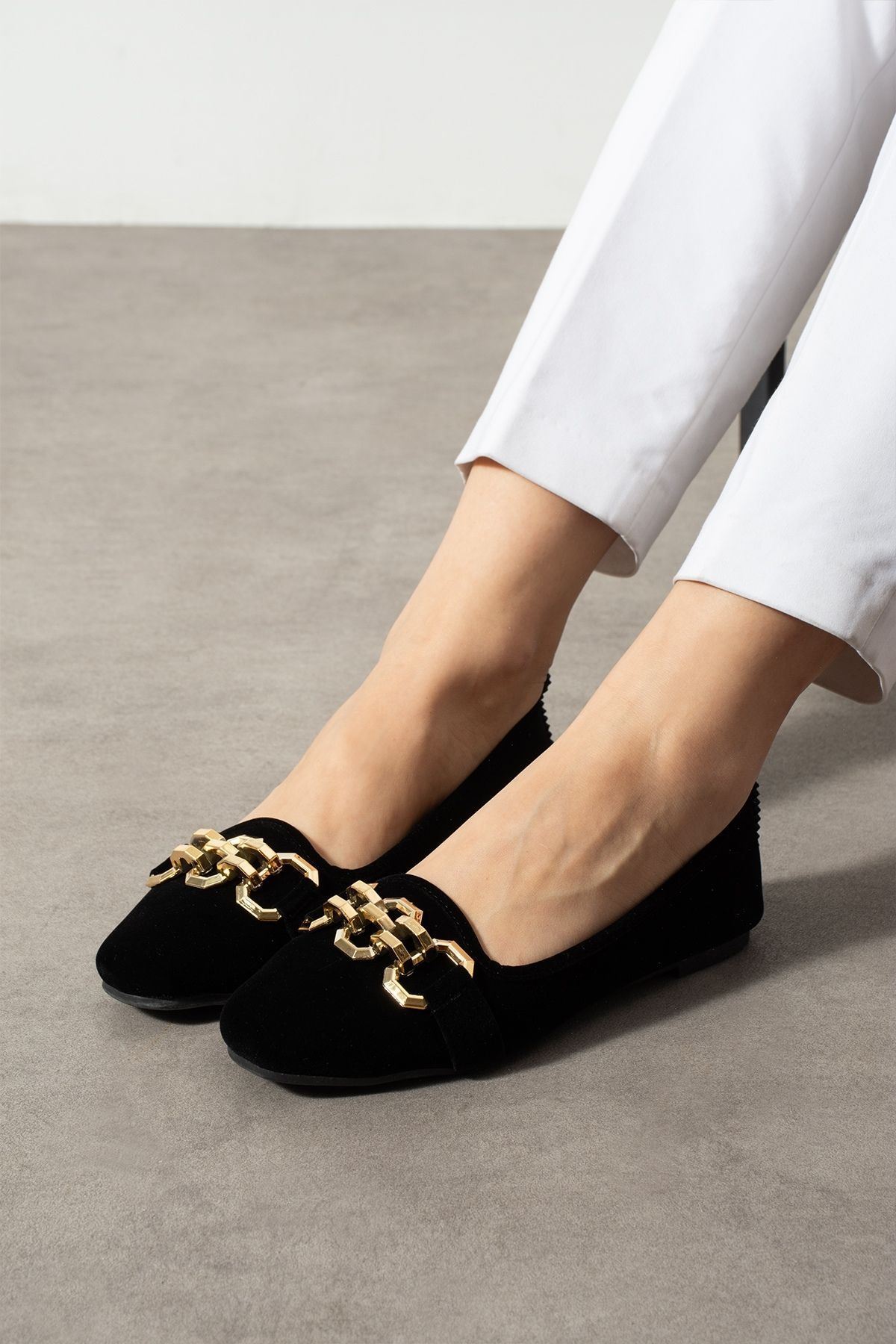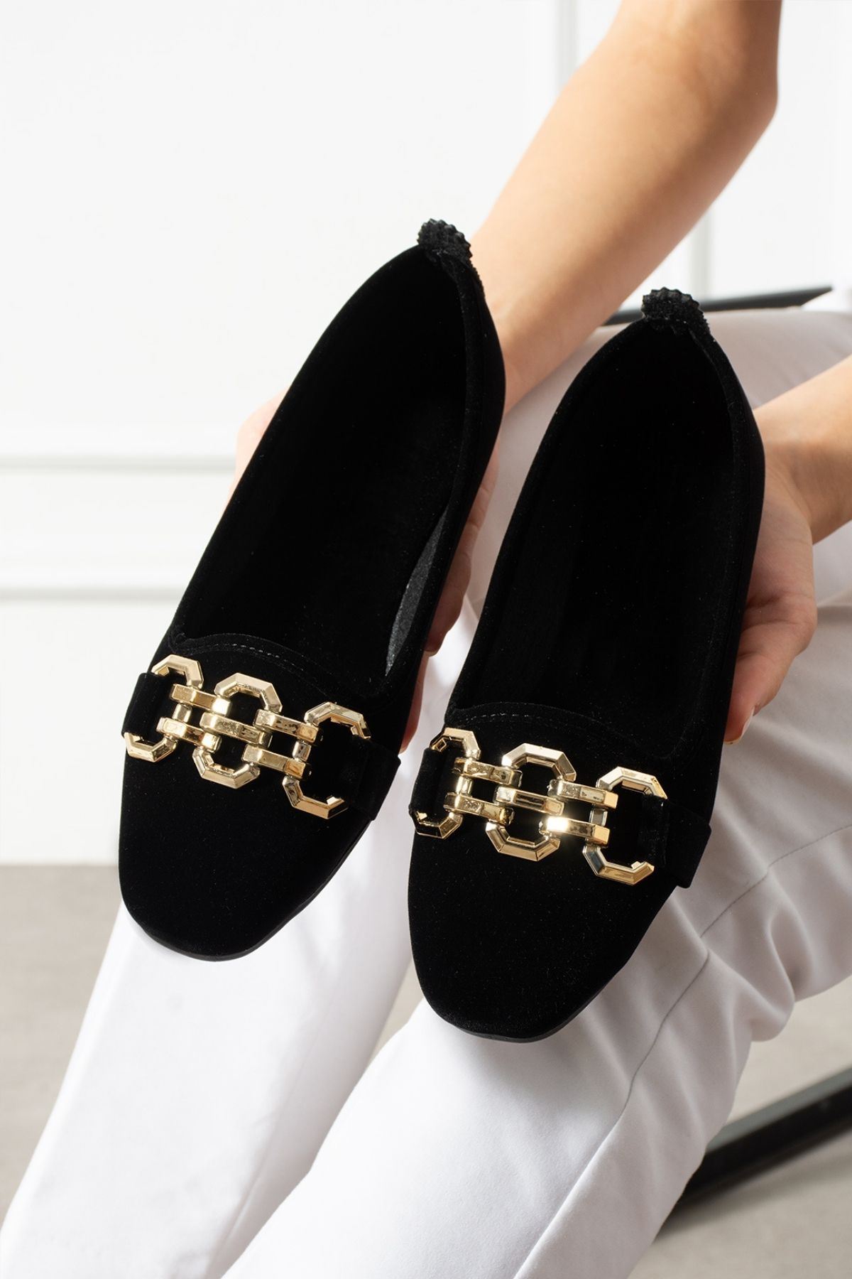 Minea Siyah Gold Tokalı Kadife Dokulu Elegant Nişan Çeyiz Bohça Misafir Ev Terliği
