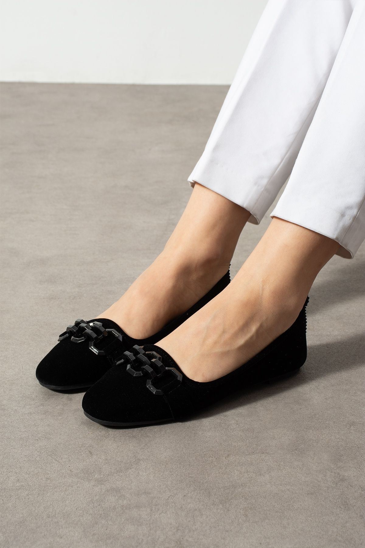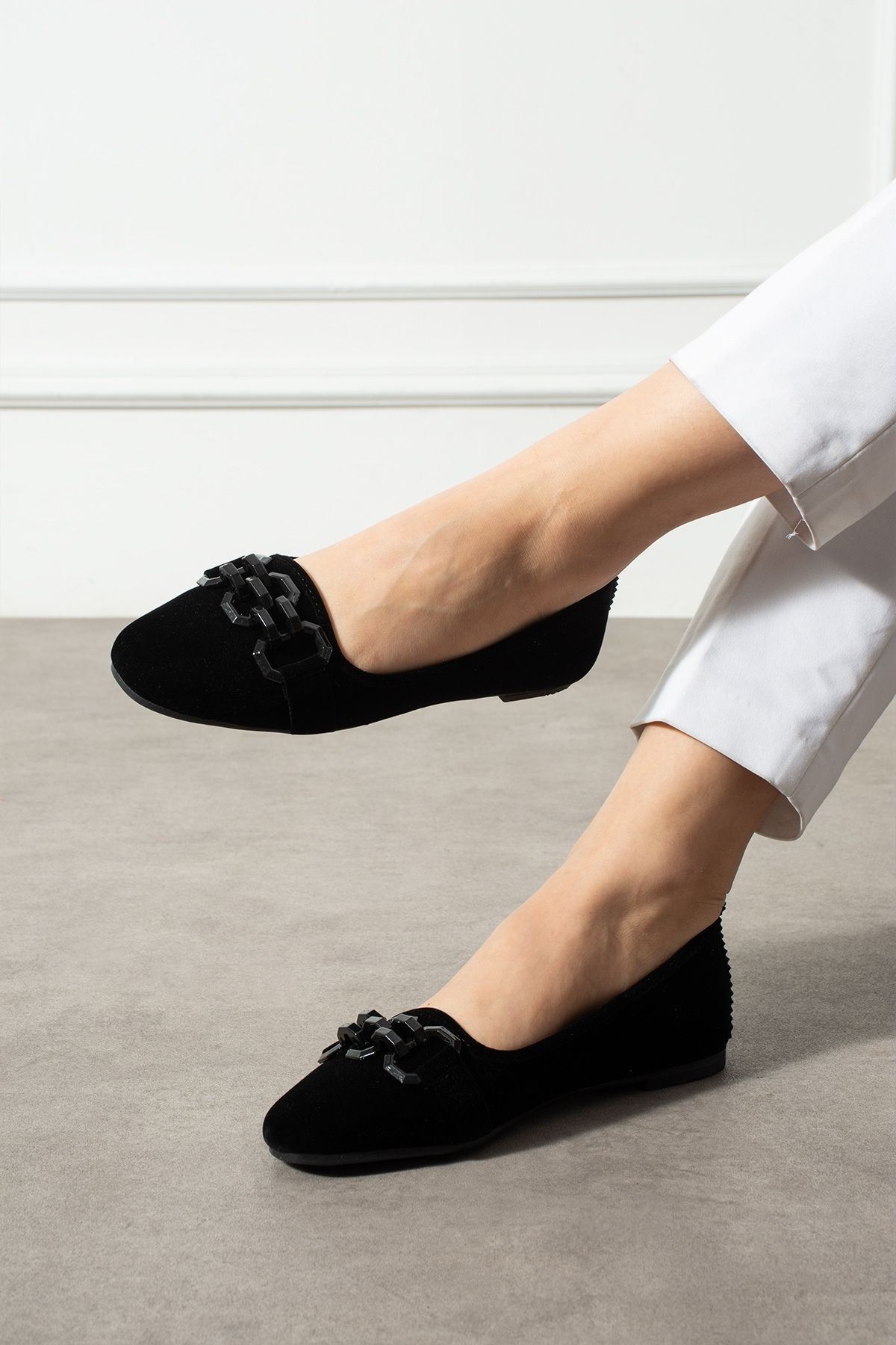 Kedja Siyah Kroko Zincir Aksesuarlı Babet