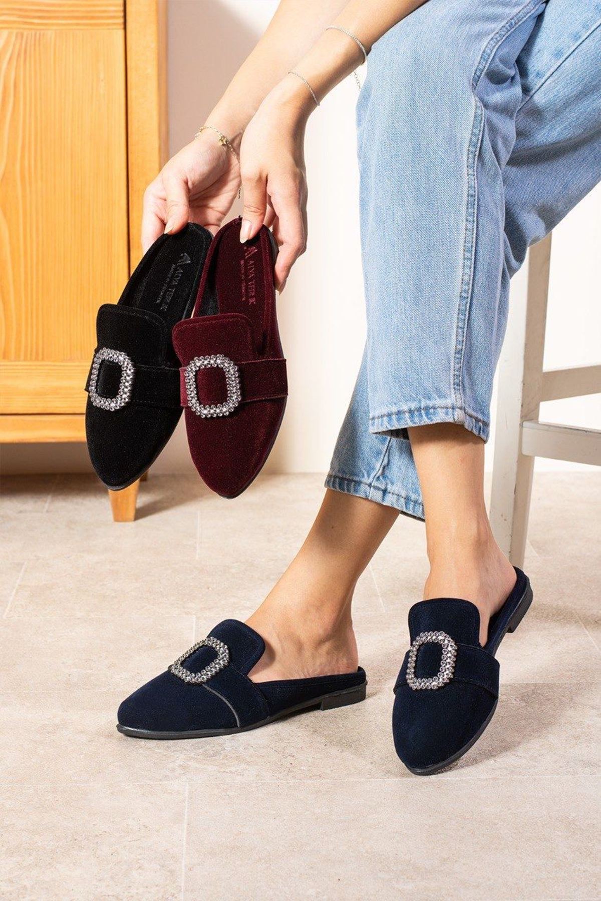 Spector Lacivert Kare Tokalı Önü Kapalı Elegant Ev Terliği