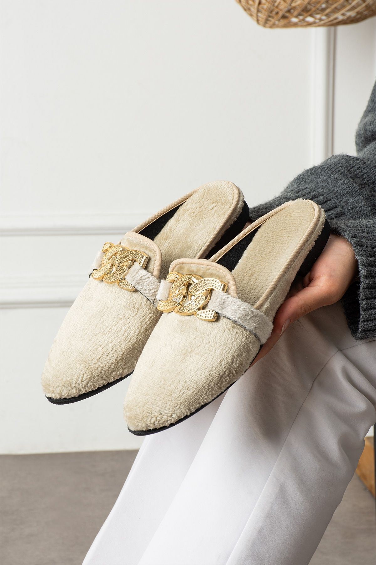 Velza Bej Kısa Tüylü Elegant Nişan Çeyiz Bohça Misafir Ev Terliği