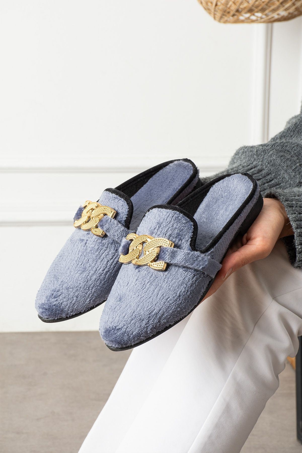 Ev yaşamınıza estetik ve konforu aynı anda taşıyan bu özel terlik modeli, yumuşak dokusuyla ayaklarınızı narince sarar. Her adımda hafifliğiyle hissettiren yapısı, iç yüzeyde kullanılan sıcak tutan astarla birleşerek sizi gün boyu şımartır.