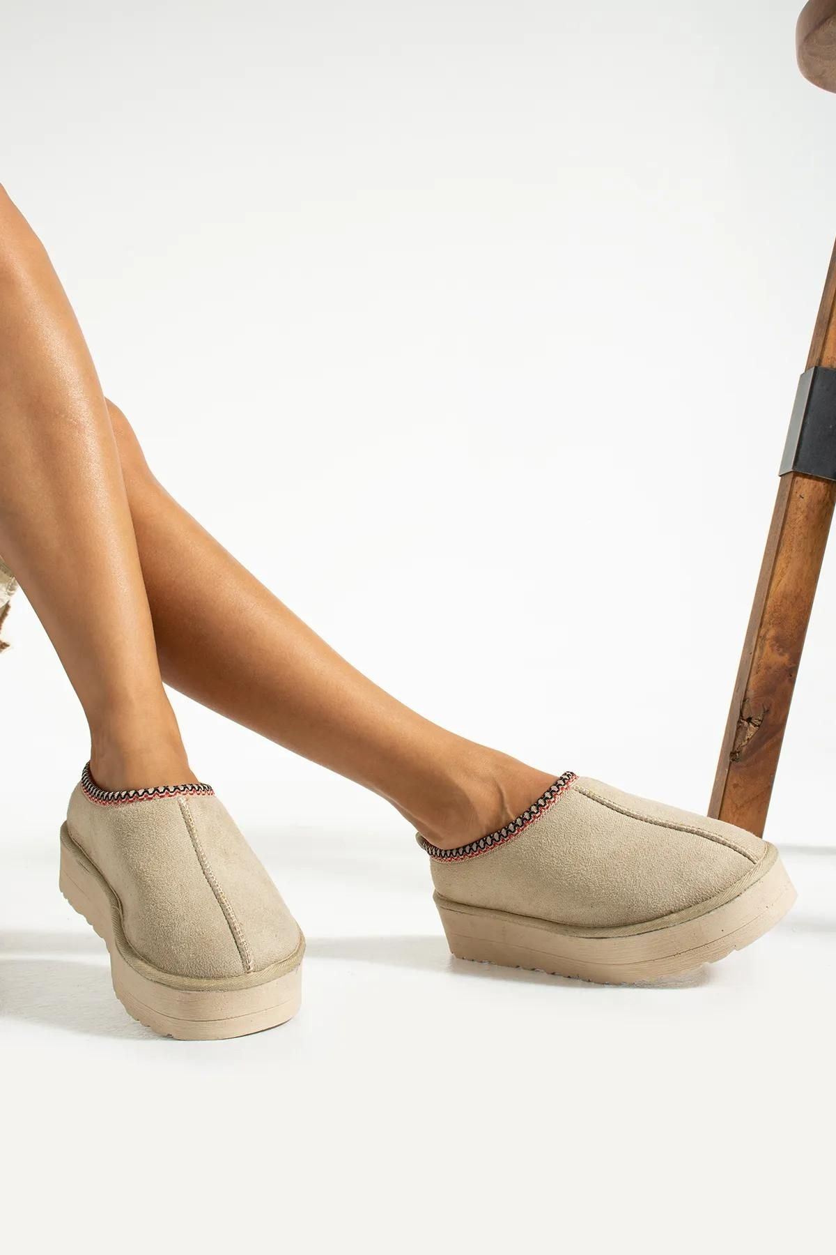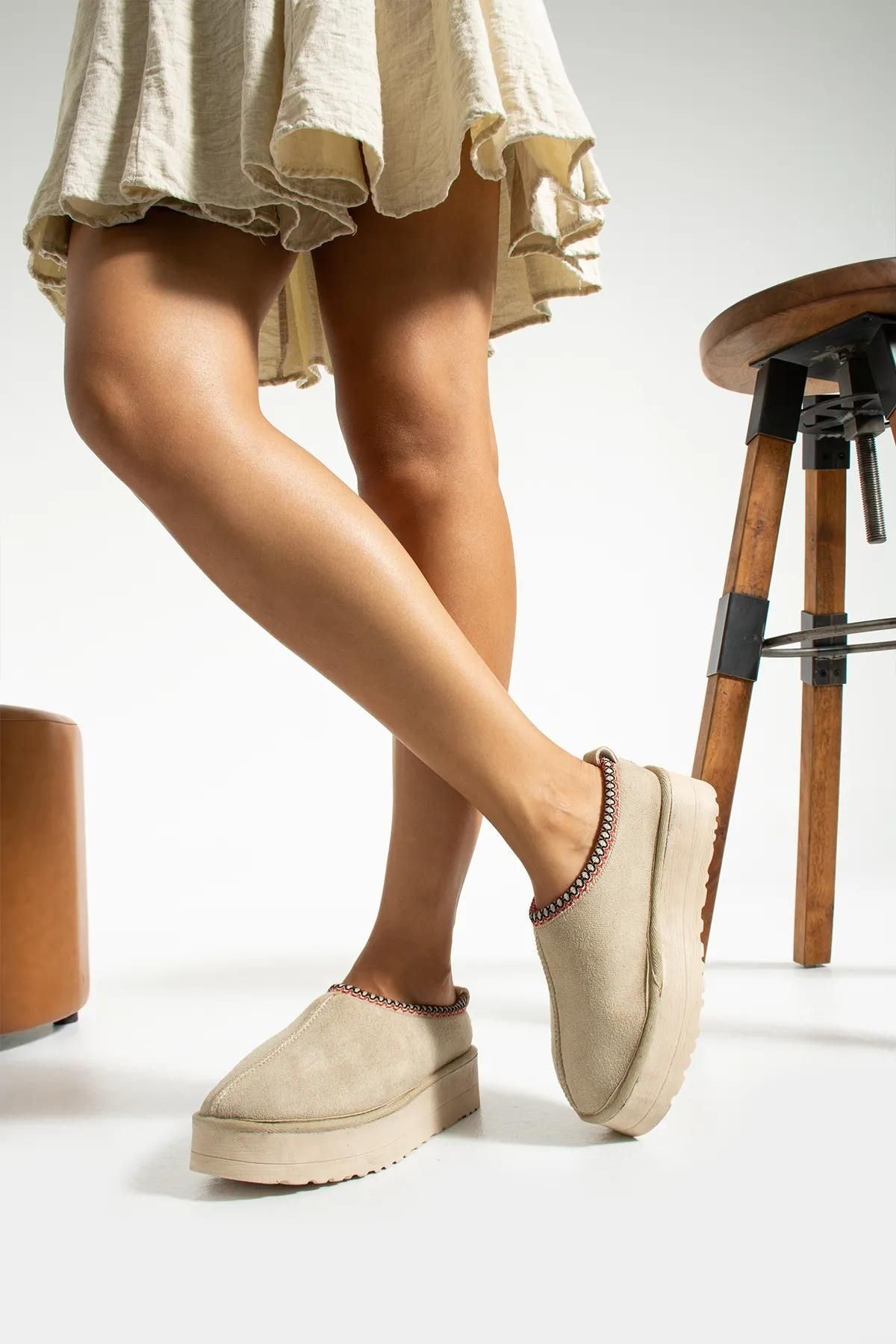 Soğuk günlerde hem şıklığınızdan ödün vermeyin hem de sıcacık kalın. Taba tonlarının doğallığıyla dikkat çeken bu kısa bot, yumuşak dokulu süet yüzeyi ve iç kısmındaki sıcak tutan astarıyla gün boyu konfor sunar. Hafif ve dayanıklı EVA tabanı sayesinde yürüyüşlerinizde sizi yormaz, yüksek taban yapısı ise modern bir silüet kazandırır. Bilek hizasında biten formu günlük kombinlerinize kolayca uyum sağlar. Günlük şehir temposuna ayak uydurmak isteyenler için hem zarif hem pratik bir tercih.