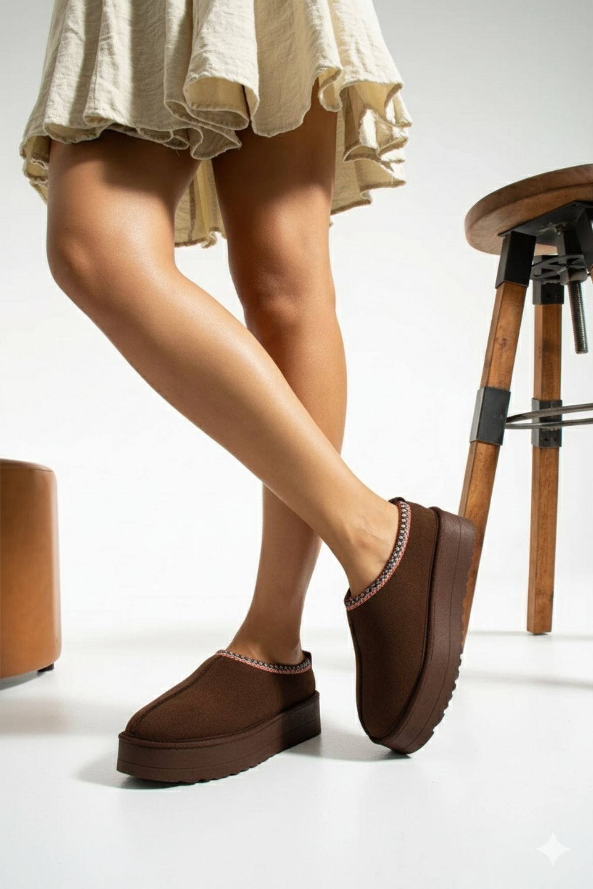 Soğuk günlerde hem şıklığınızdan ödün vermeyin hem de sıcacık kalın. Taba tonlarının doğallığıyla dikkat çeken bu kısa bot, yumuşak dokulu süet yüzeyi ve iç kısmındaki sıcak tutan astarıyla gün boyu konfor sunar. Hafif ve dayanıklı EVA tabanı sayesinde yürüyüşlerinizde sizi yormaz, yüksek taban yapısı ise modern bir silüet kazandırır. Bilek hizasında biten formu günlük kombinlerinize kolayca uyum sağlar. Günlük şehir temposuna ayak uydurmak isteyenler için hem zarif hem pratik bir tercih.